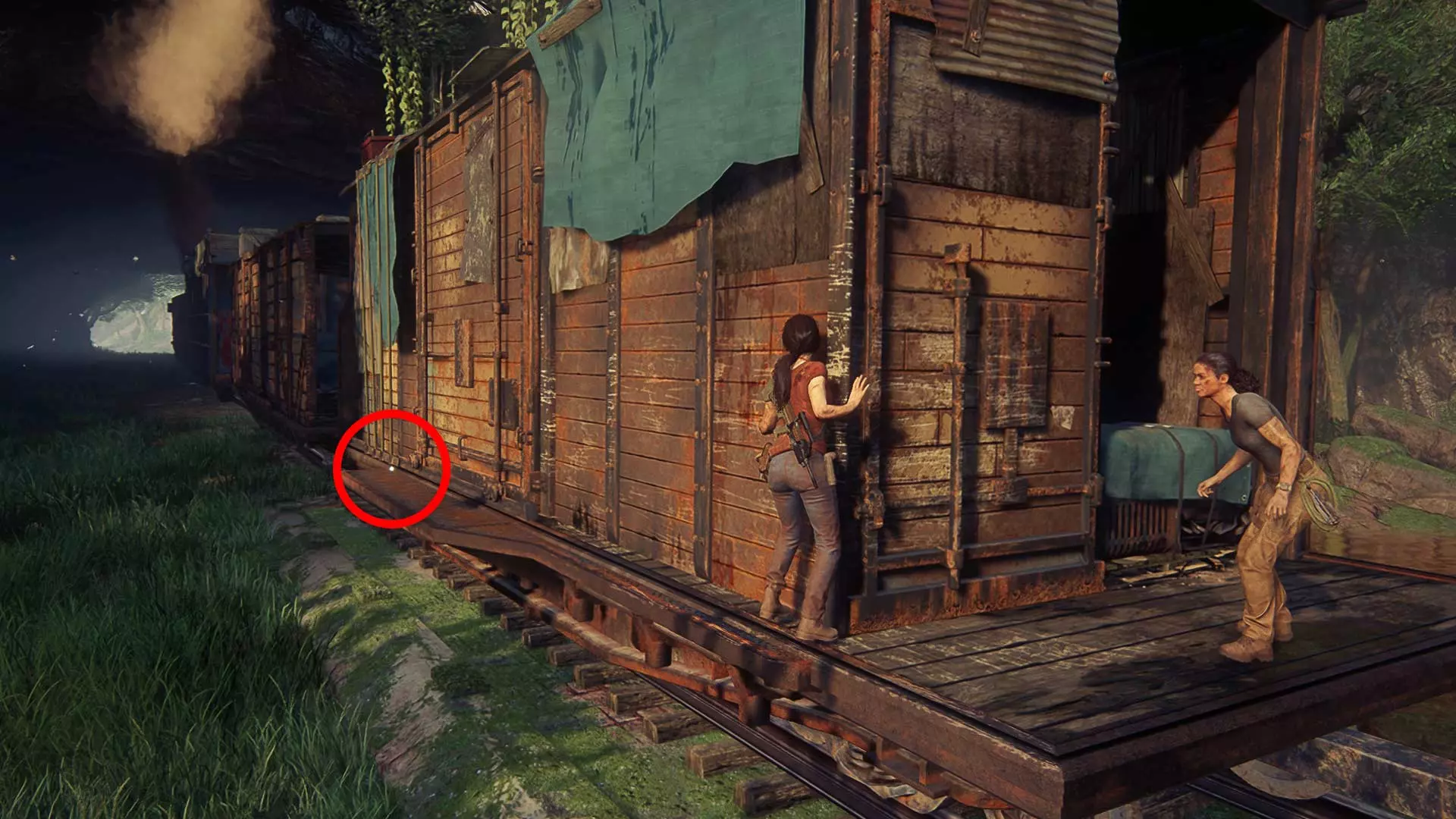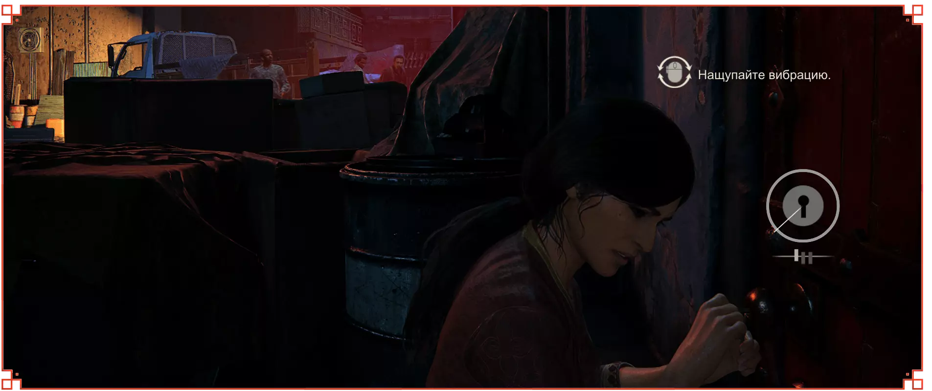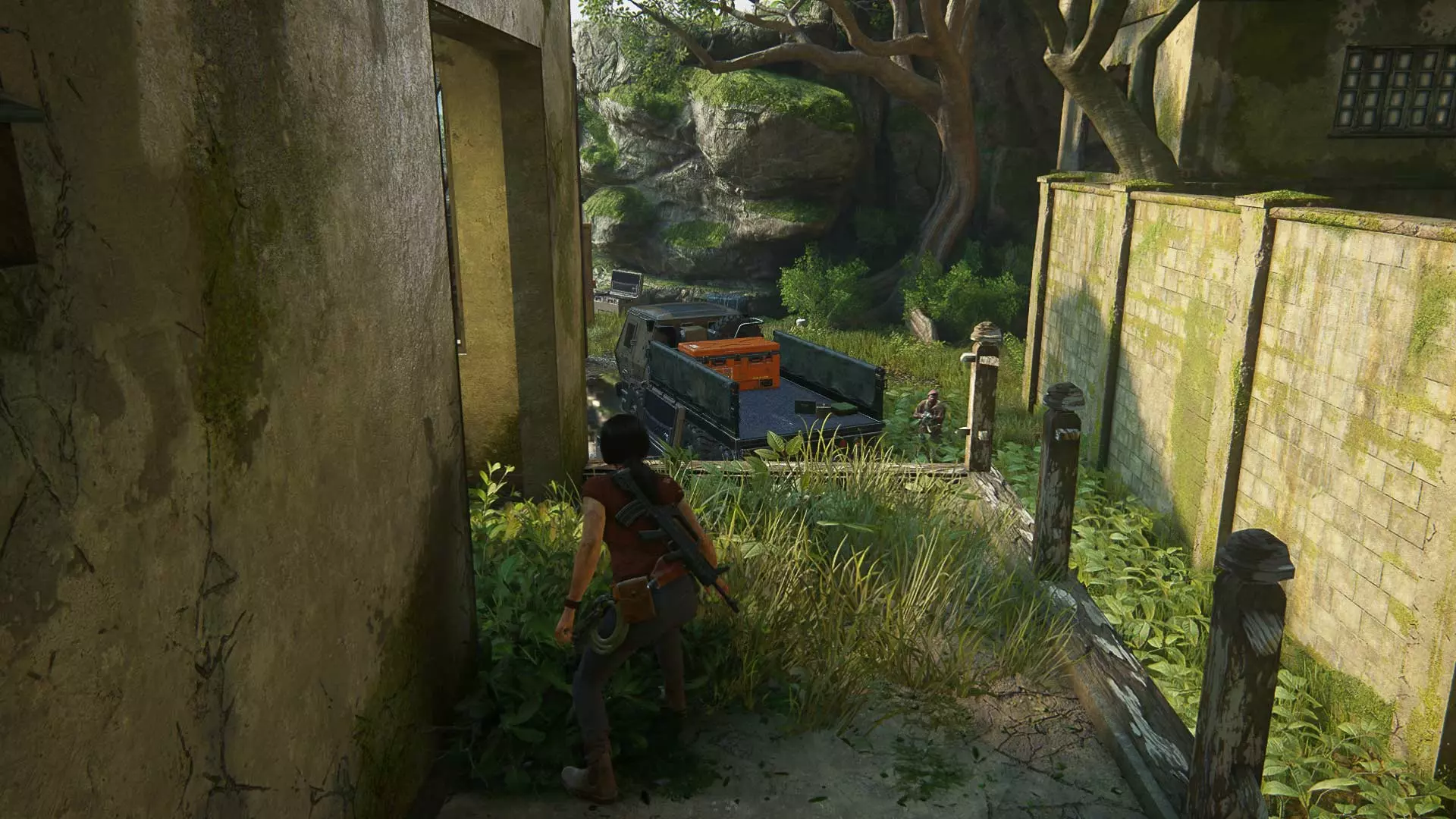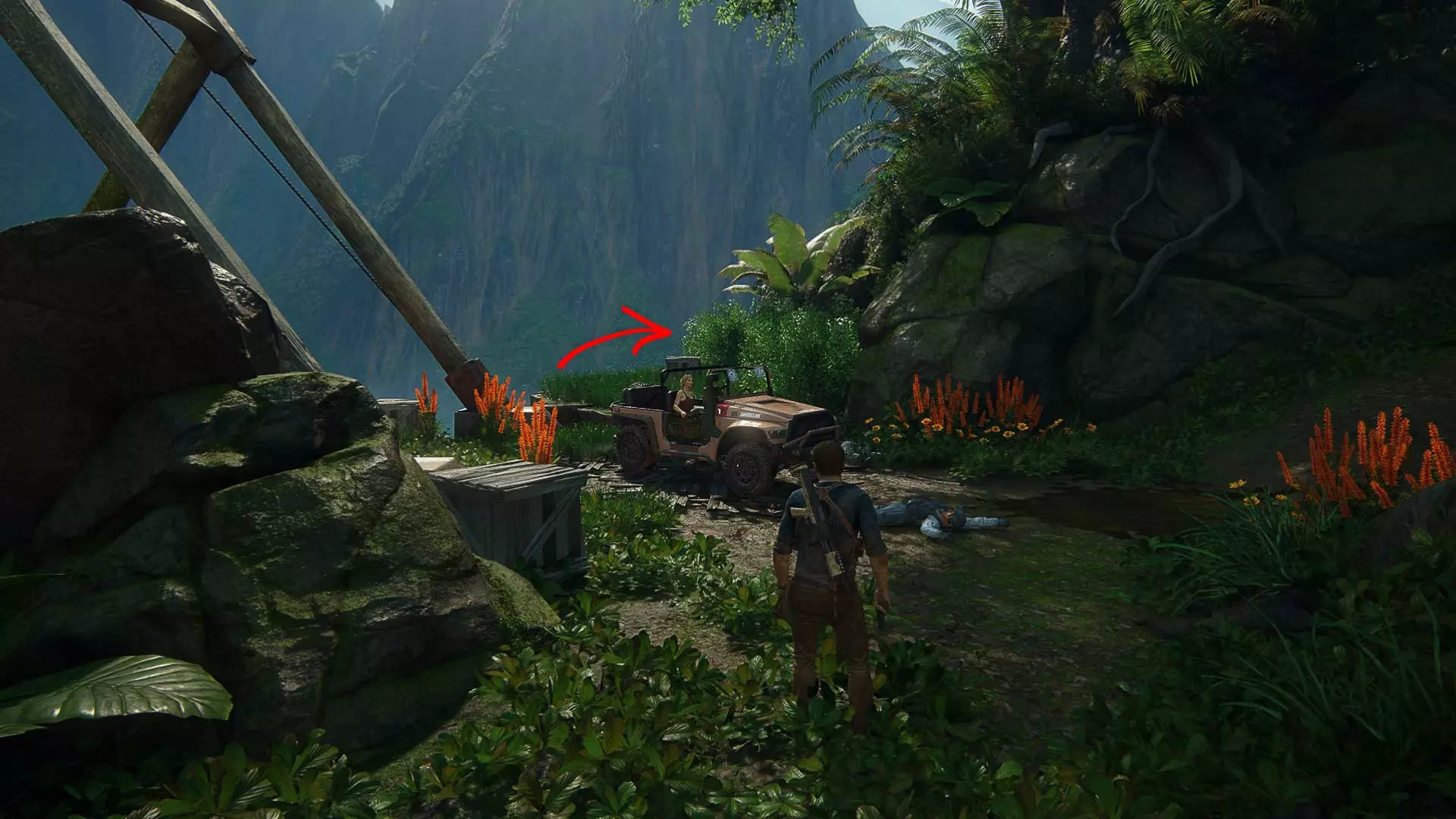 请秘密行动,因为一旦被发现,埃琳娜就会与敌人交火。此外,在潜行时要小心,埃琳娜有时会杀死靠近灌木丛的敌人。 以任何方便的方式沿着岩石爬到汽车旁。但接下来不要着急…… 尽量不被发现地坐进车里。建议等待撤退路线上没有敌人的时机,然后跳进驾驶座,沿着泥泞的道路离开。20 章
