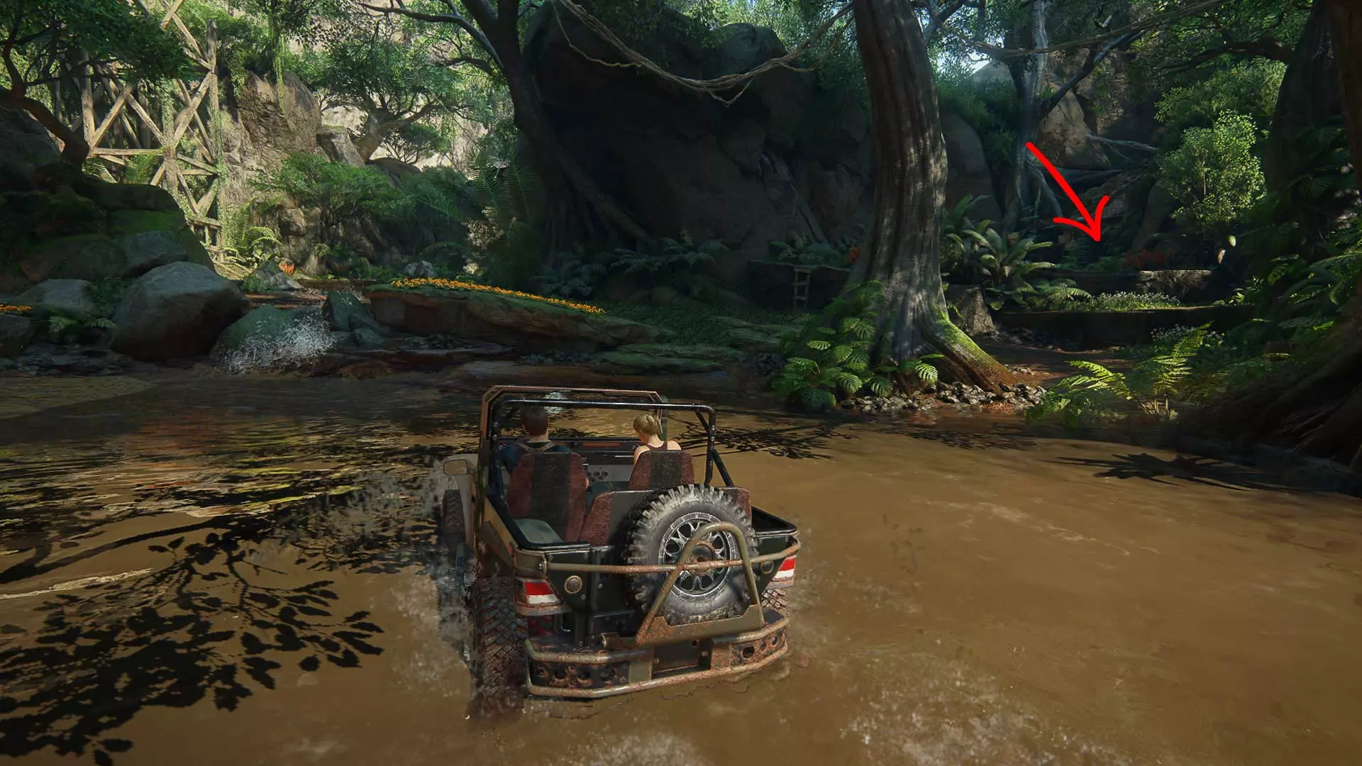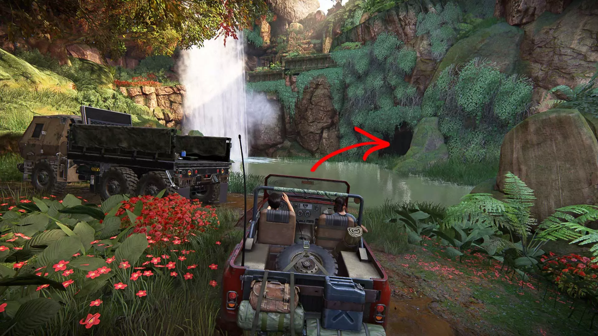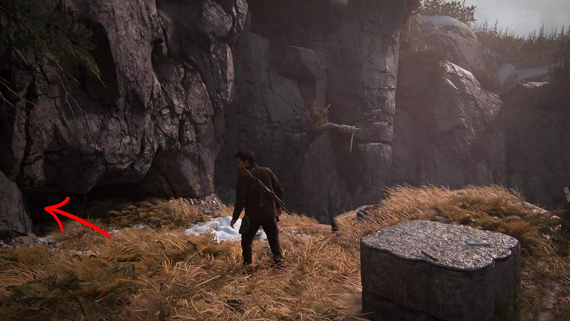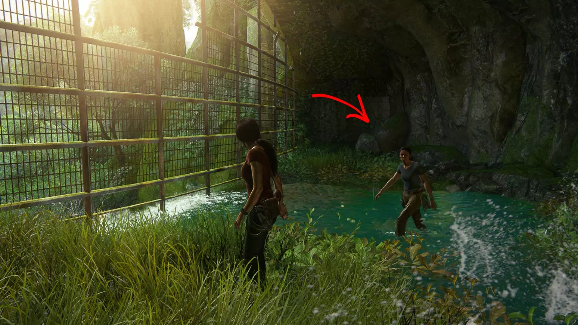 请秘密行动,因为一旦被发现,埃琳娜就会与敌人交火。此外,在潜行时要小心,埃琳娜有时会杀死靠近灌木丛的敌人。 以任何方便的方式沿着岩石爬到汽车旁。但接下来不要着急…… 尽量不被发现地坐进车里。建议等待撤退路线上没有敌人的时机,然后跳进驾驶座,沿着泥泞的道路离开。20 章