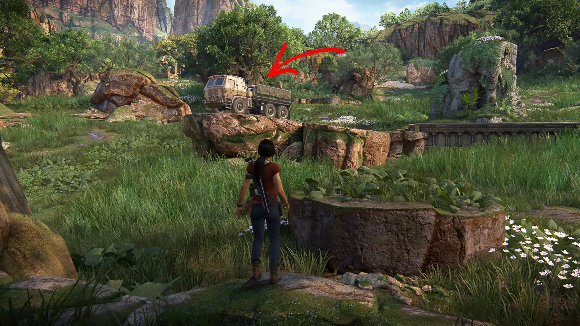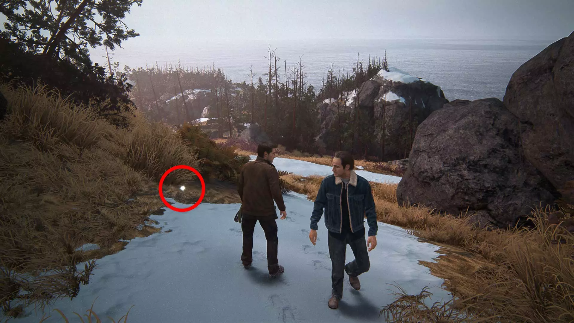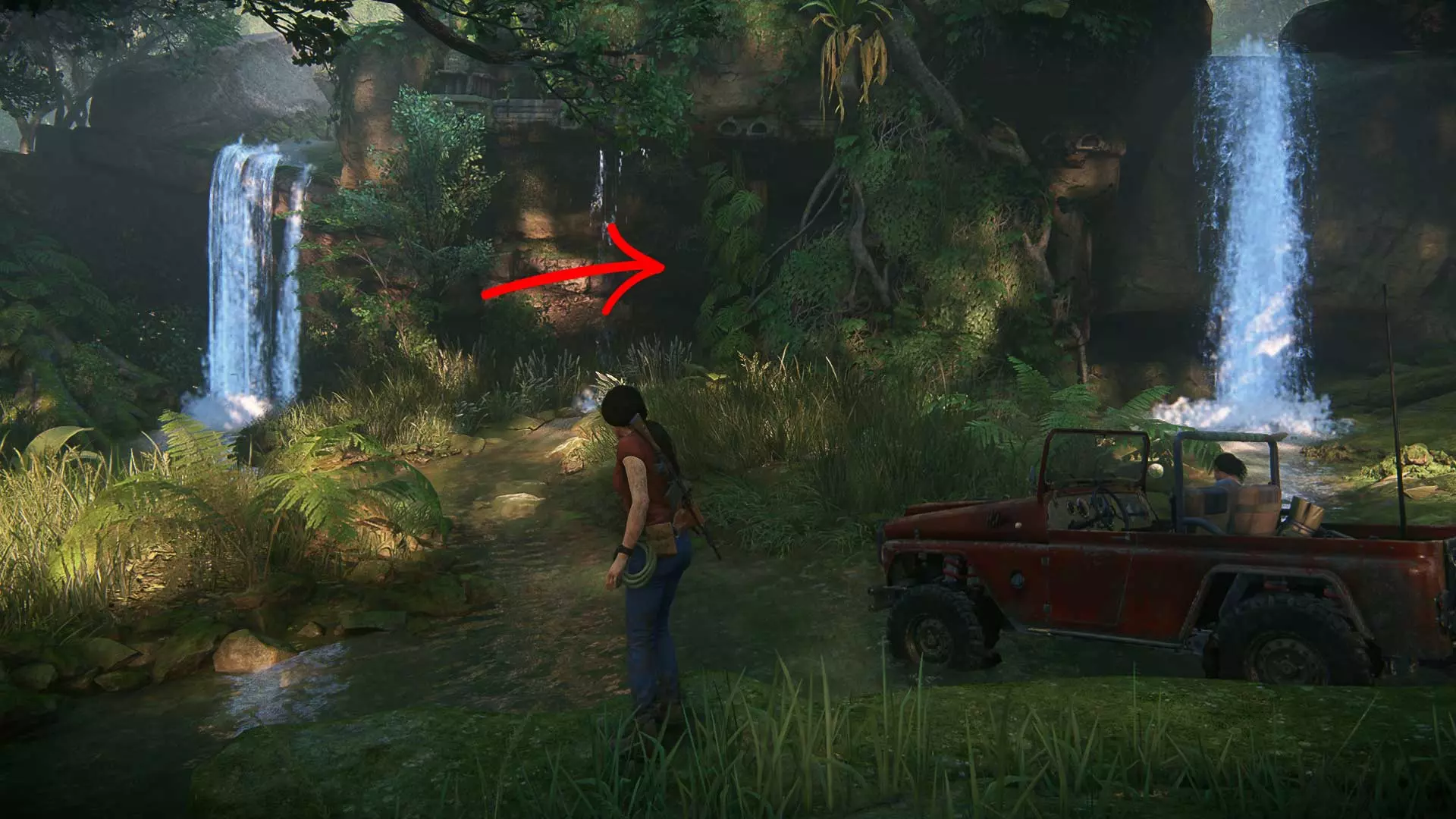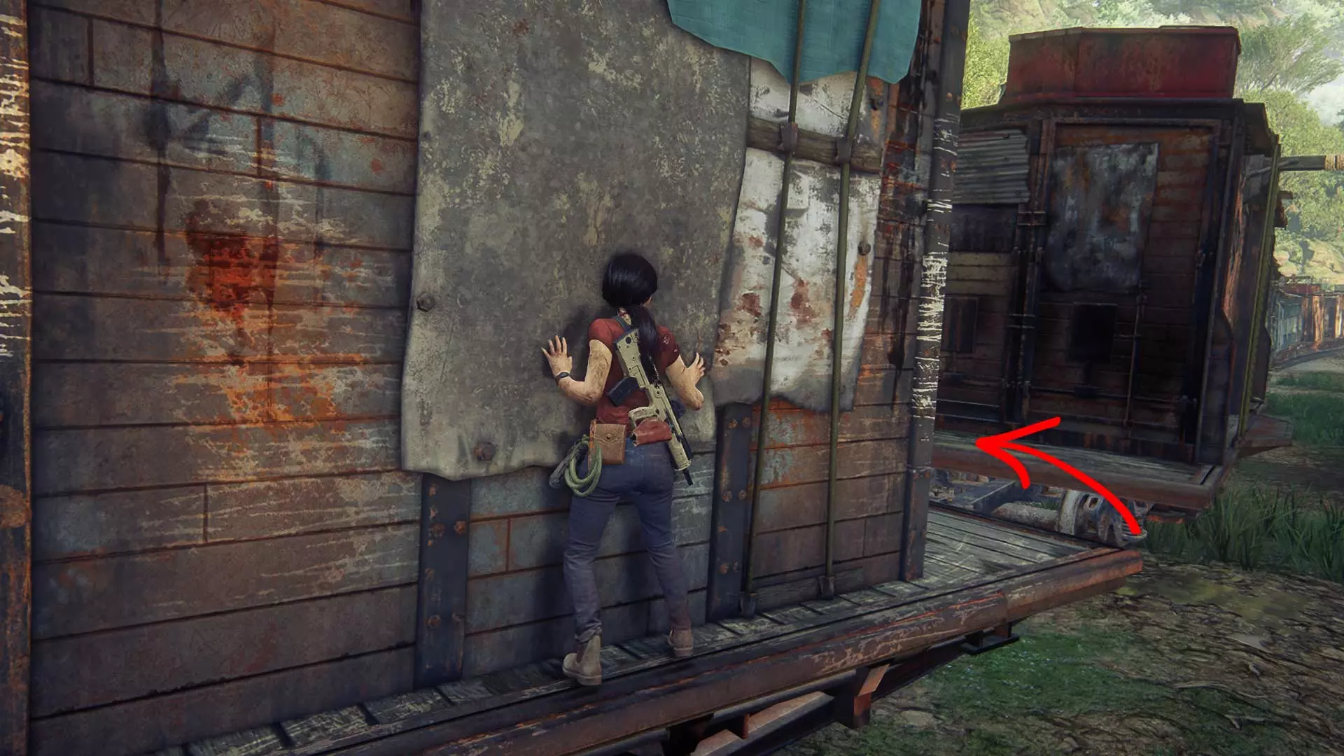 请秘密行动,因为一旦被发现,埃琳娜就会与敌人交火。此外,在潜行时要小心,埃琳娜有时会杀死靠近灌木丛的敌人。 以任何方便的方式沿着岩石爬到汽车旁。但接下来不要着急…… 尽量不被发现地坐进车里。建议等待撤退路线上没有敌人的时机,然后跳进驾驶座,沿着泥泞的道路离开。20 章