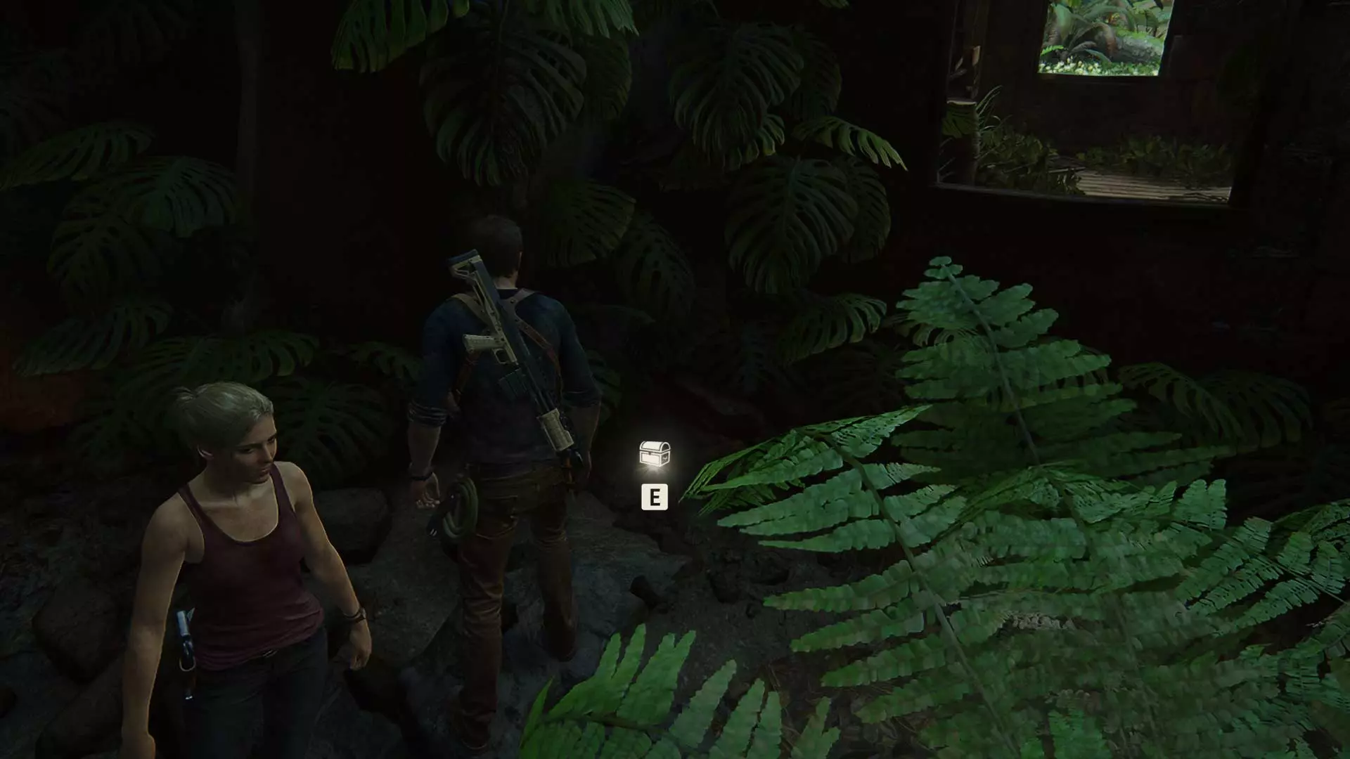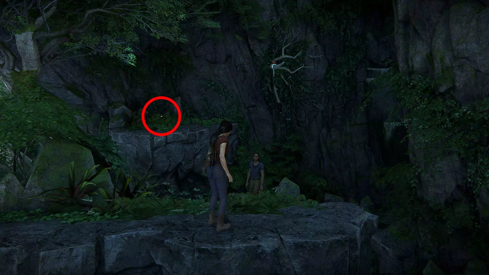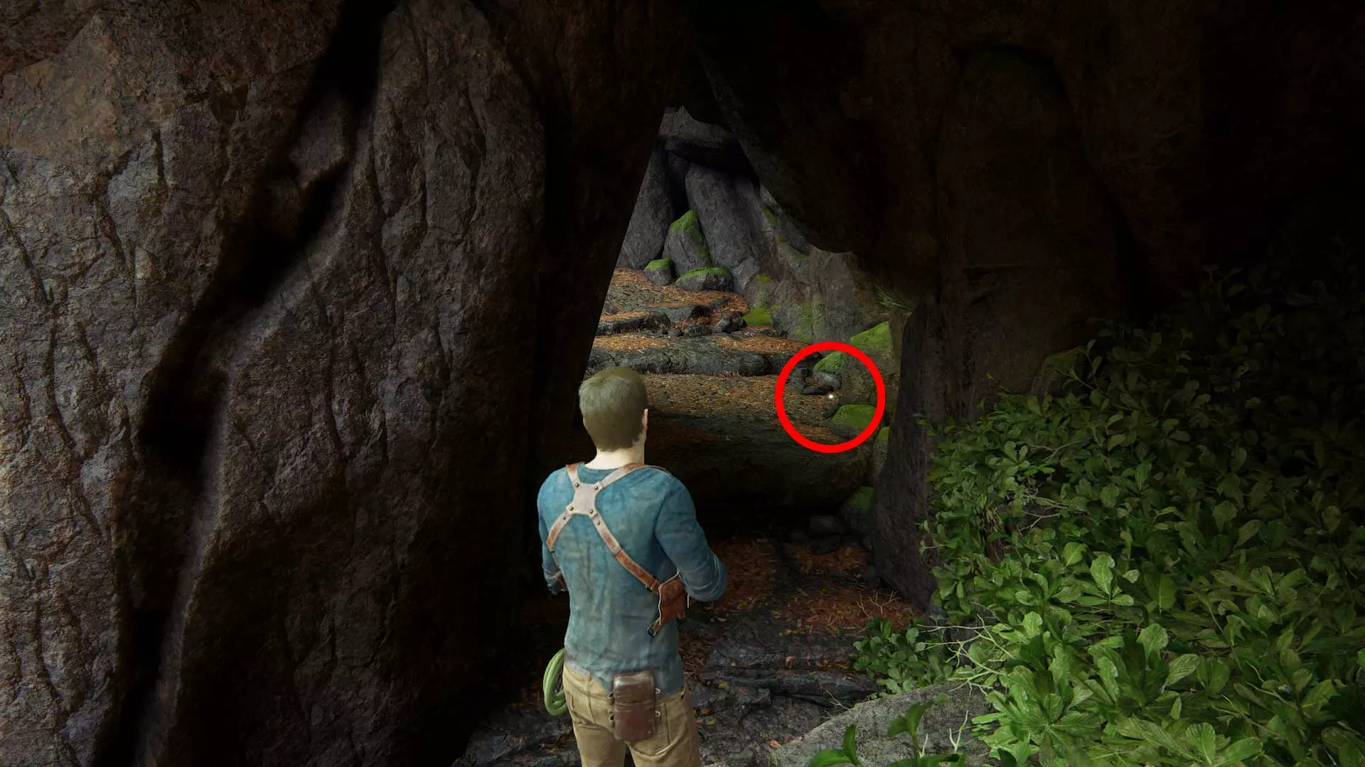 一直往前走到底,然后再次向右转。灌木丛里藏着宝藏。