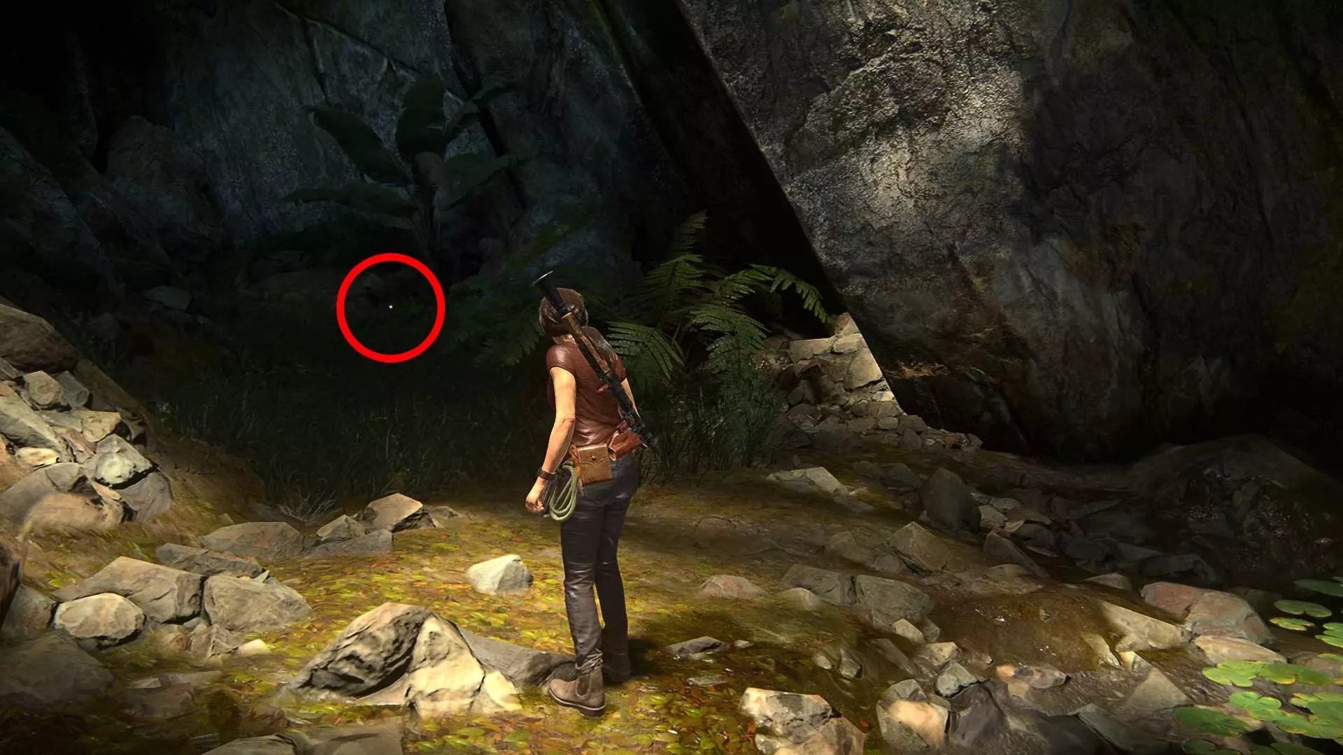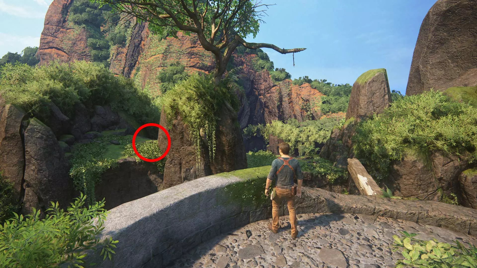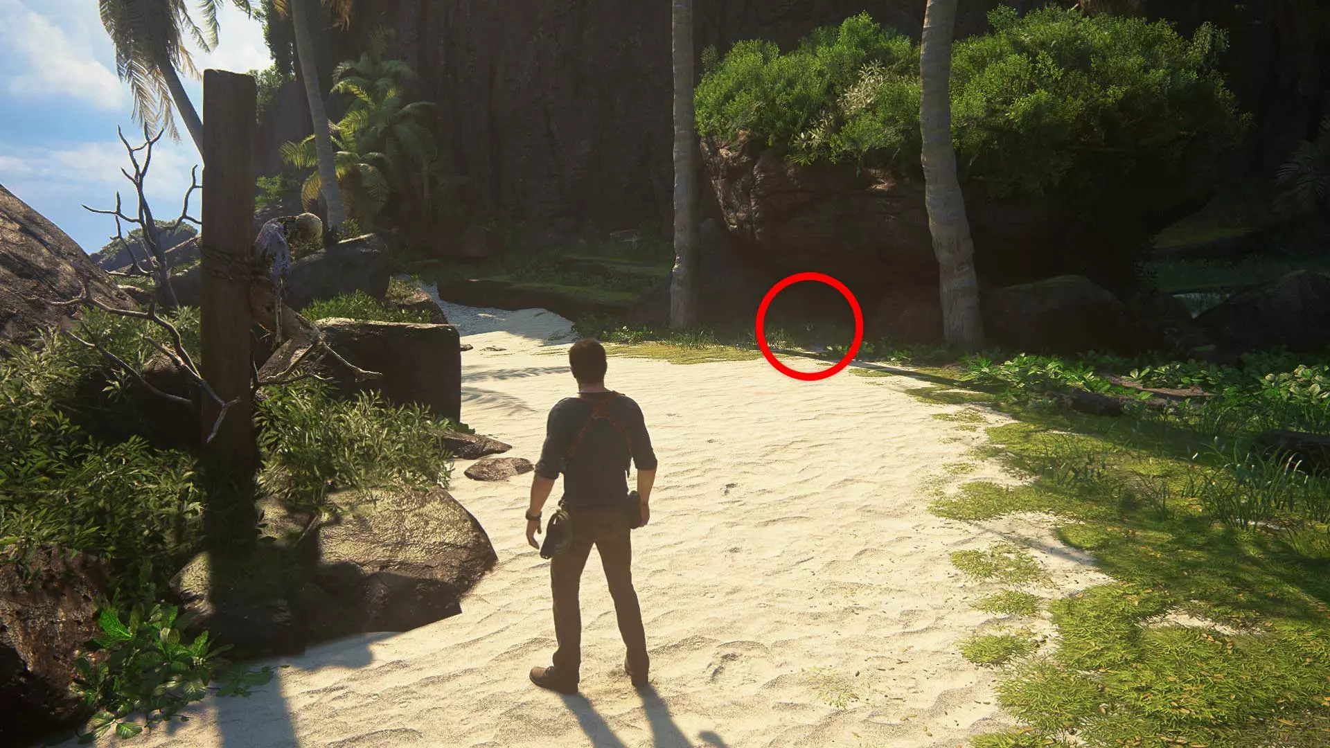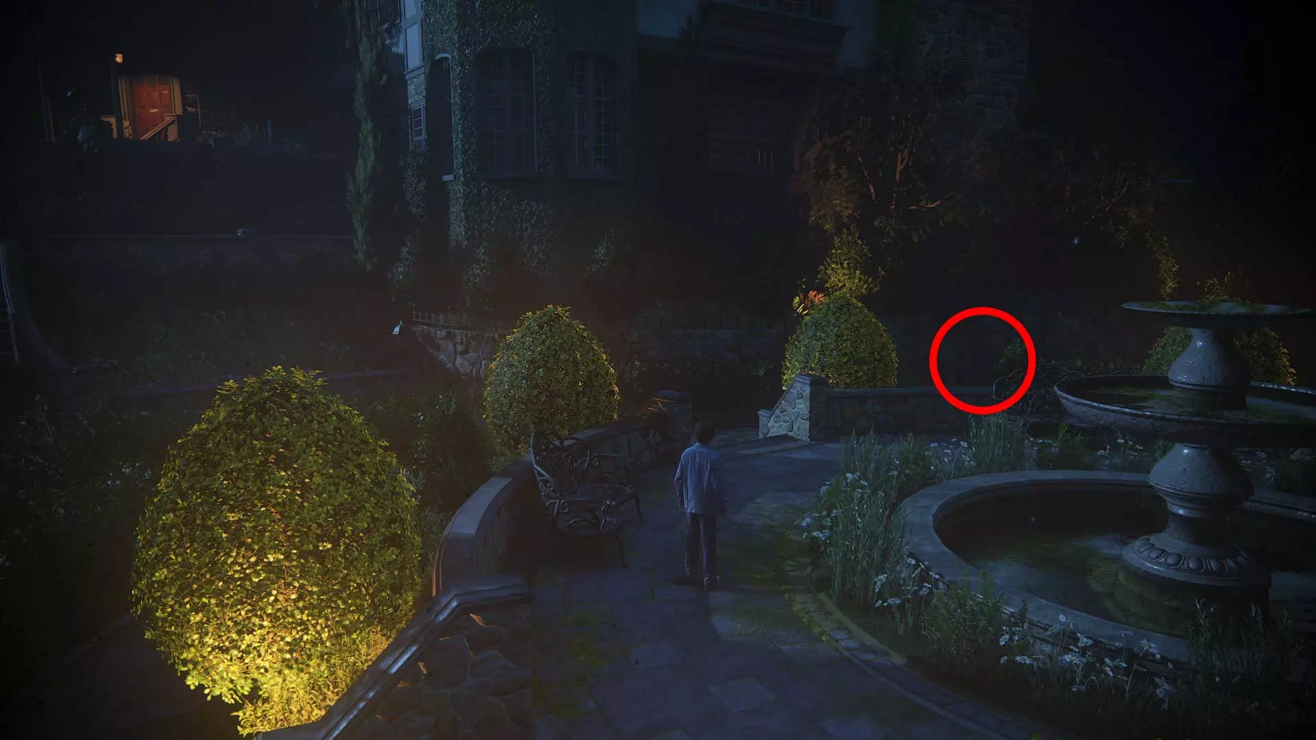 一直往前走到底,然后再次向右转。灌木丛里藏着宝藏。