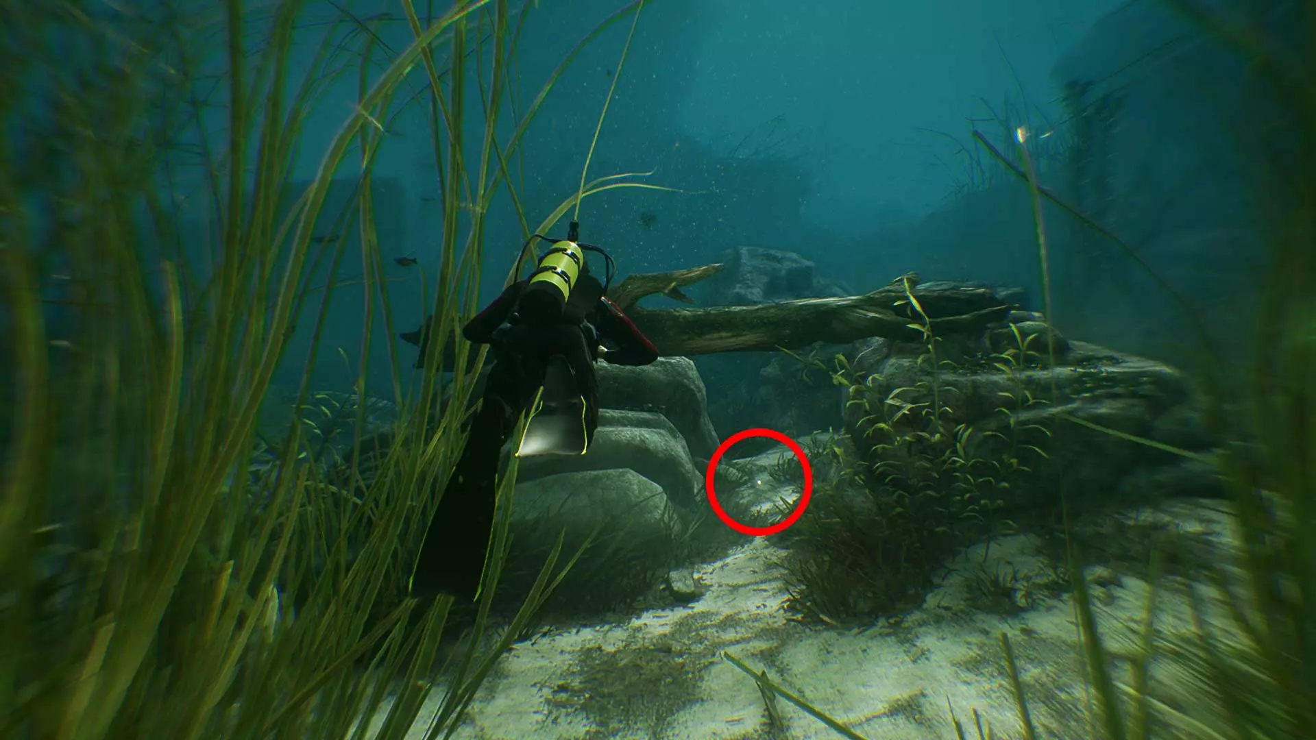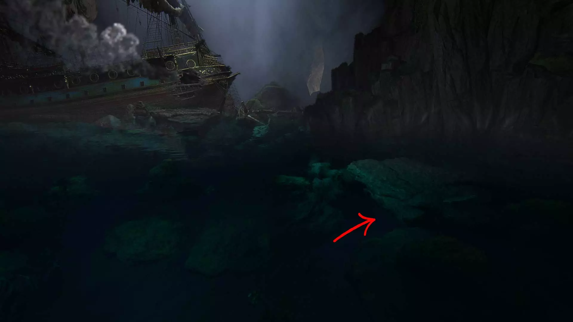 45/68【镶嵌宝石的管嘴】当你浮出水面时,游向洞穴的左侧,然后再次潜入水中。