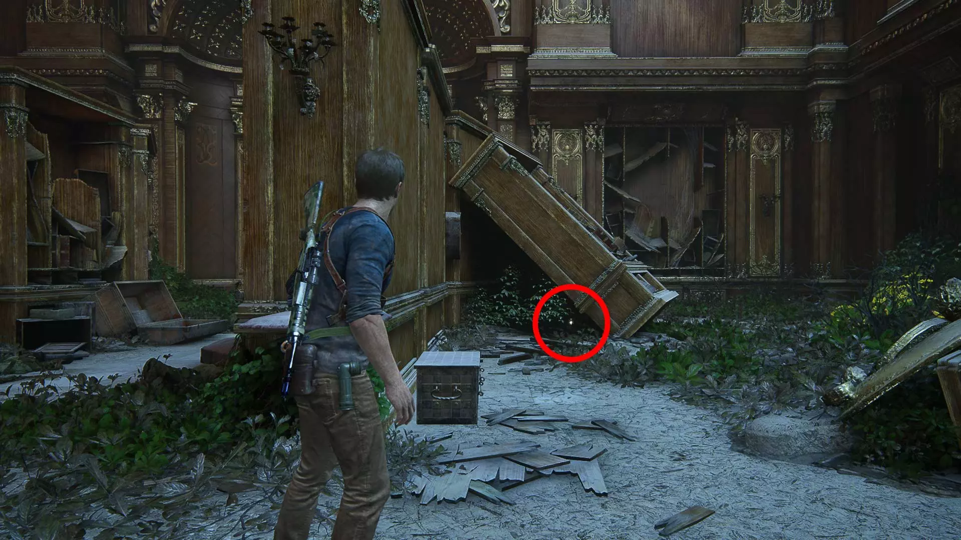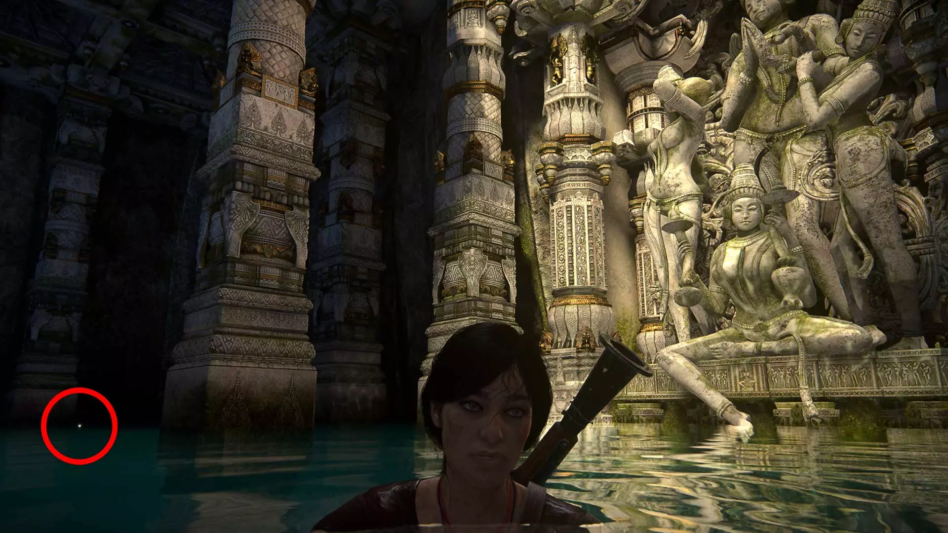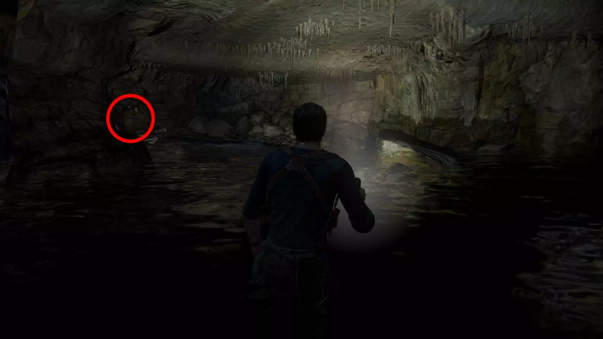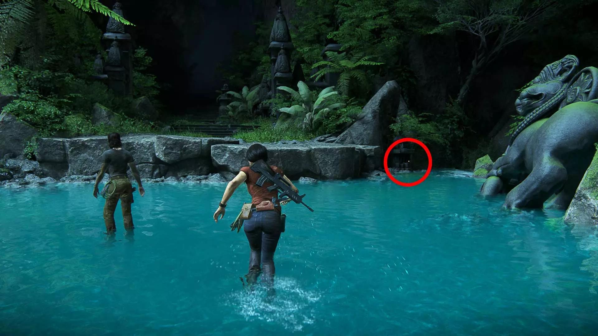 1/109 猫形巴拿马吊坠 当内特的手铐被解开并继续前进后,在移动箱子附近会发现一口井。井内有第一件宝藏。