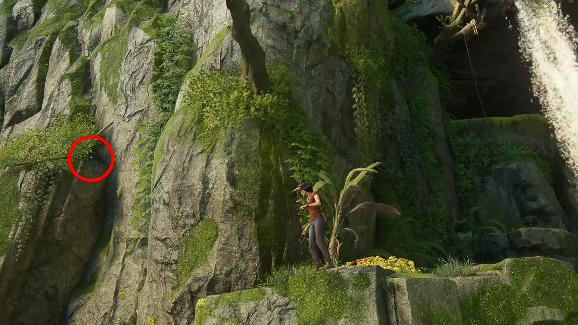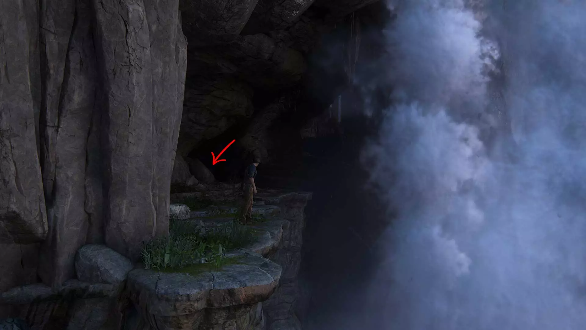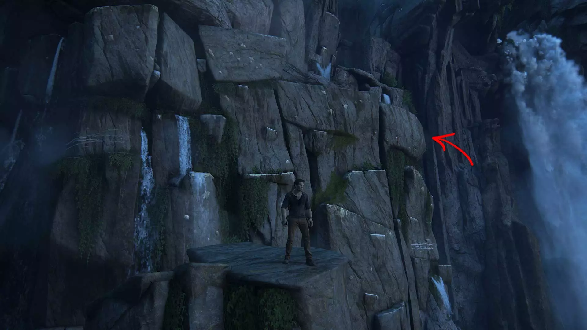 在宝藏附近,悬崖边上给瀑布拍张照。