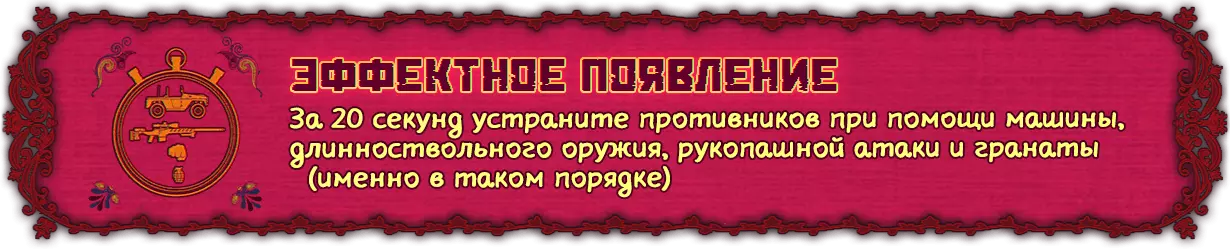 在这次遭遇战中,你将获得完成成就所需的一切条件。正如描述中所指出的,需要在15秒内按照正确顺序完成3次击杀……用手枪击杀、用自动步枪击杀、用手榴弹击杀。