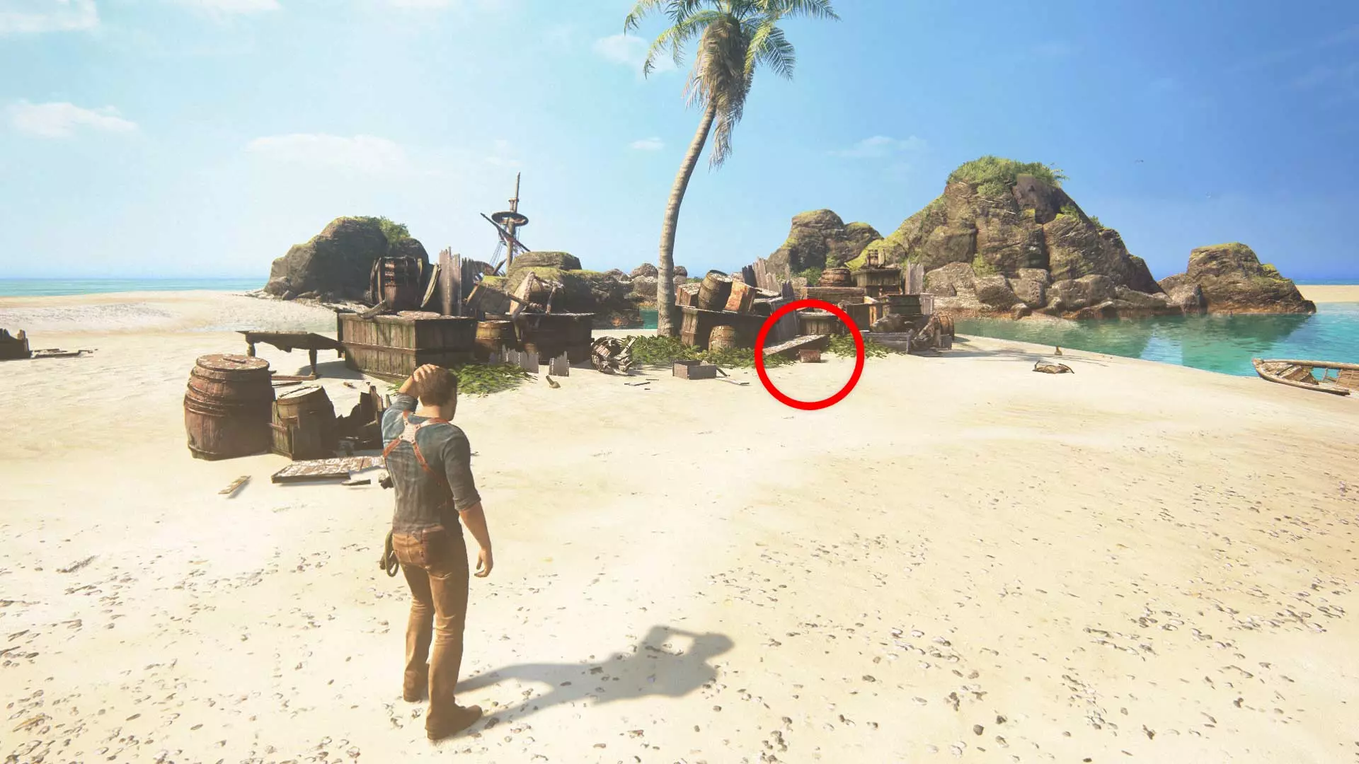 武器类型 在哪里获取? 手榴弹Mk-NDI 从第10章开始,几乎可以从每个倒下的敌人身上拾取。 炸药 手榴弹的替代品,在第8和第9章中出现。 遭遇战:桥梁 丙烷罐 可在第8章的废墟中找到。将罐子扔向敌人方向并向其射击。冲突:桥梁 火药桶 出现在第9章,内森和山姆穿过挖掘隧道时。 冲突:隧道 机枪(炮塔) 在同一第9章,穿过隧道和爆炸(红色)桶之后。机枪架在木头上。 冲突:隧道 小型火药桶 出现在第20章,船只之间。需要拿起火药桶并扔向敌人方向,然后开枪引爆将其炸死。 遭遇战:沉船墓地 德什卡重机枪 在第20章。击杀重装甲敌人并拾取其机枪(德什卡重机枪)。遭遇战:沉船墓地