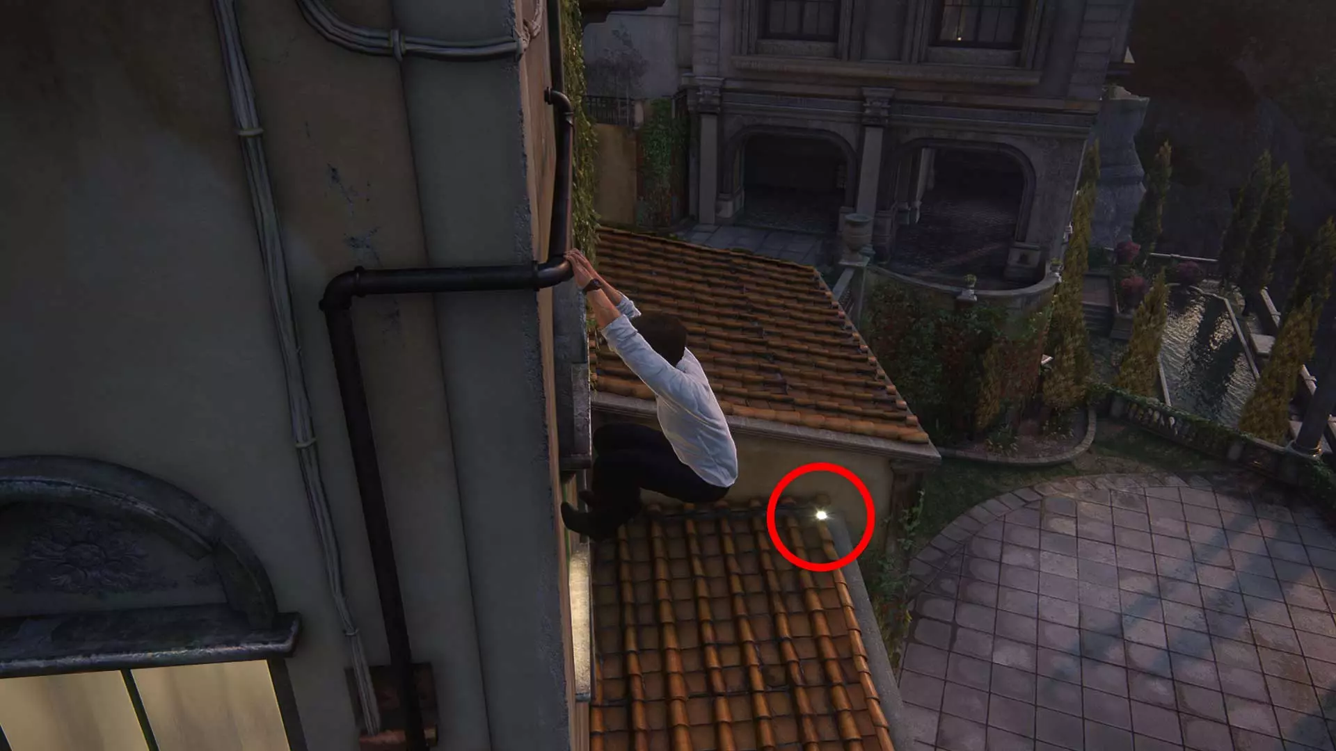 13/109叙利亚花瓶 从通风管道出来后,从阳台上跳下去,然后跑到建筑物的拐角处。