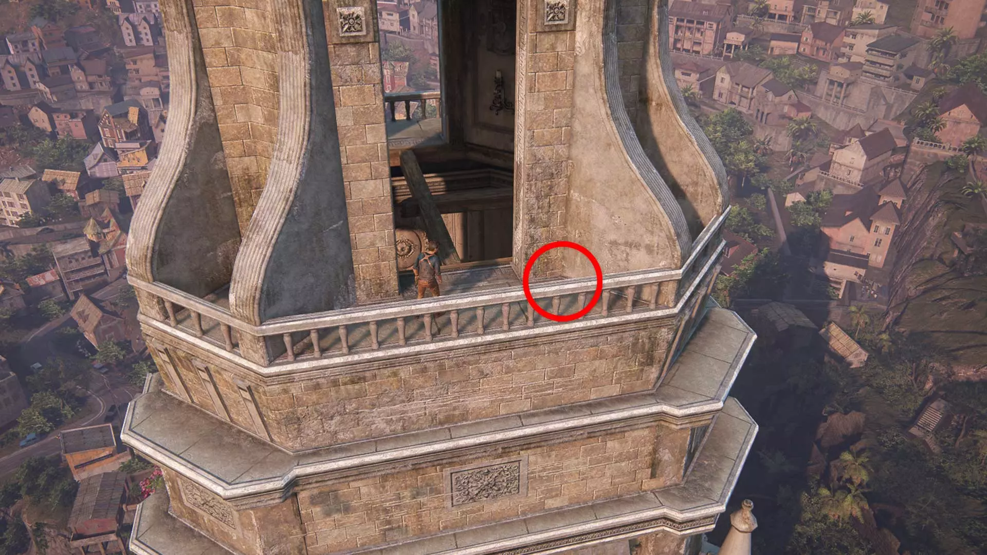 激活4个黄道十二宫符号的铃铛后,你将获得登上塔顶的机会。接下来你需要爬得更高去敲响大铃铛,但先不要碰它,而是走到阳台,沿着墙上的台阶向上爬。到达屋顶后,爬上最顶端的柱子,即可解锁成就。
