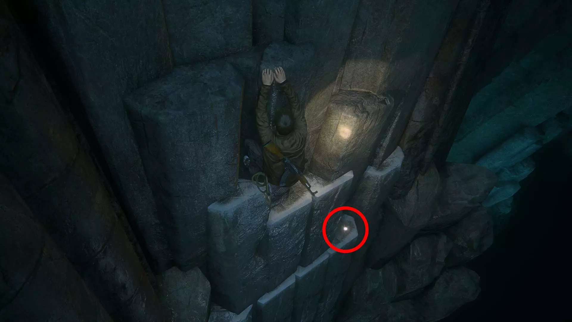 32/68 雕花陶罐 借助岩石钩爪爬到顶部后,向左跳向墙壁。