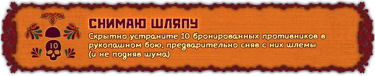 在首次通关并收集到所有收集品后,用点数解锁或购买所有类型的武器以及游戏流程中的各种修改器(作弊码)。以“最高”难度开始新游戏,并使用已解锁的武器和实用修改器(如无限弹药、时间减缓等)通关。 步骤3 • 成就【НА СКОРОСТЬ】和【СНАЙПЕР】