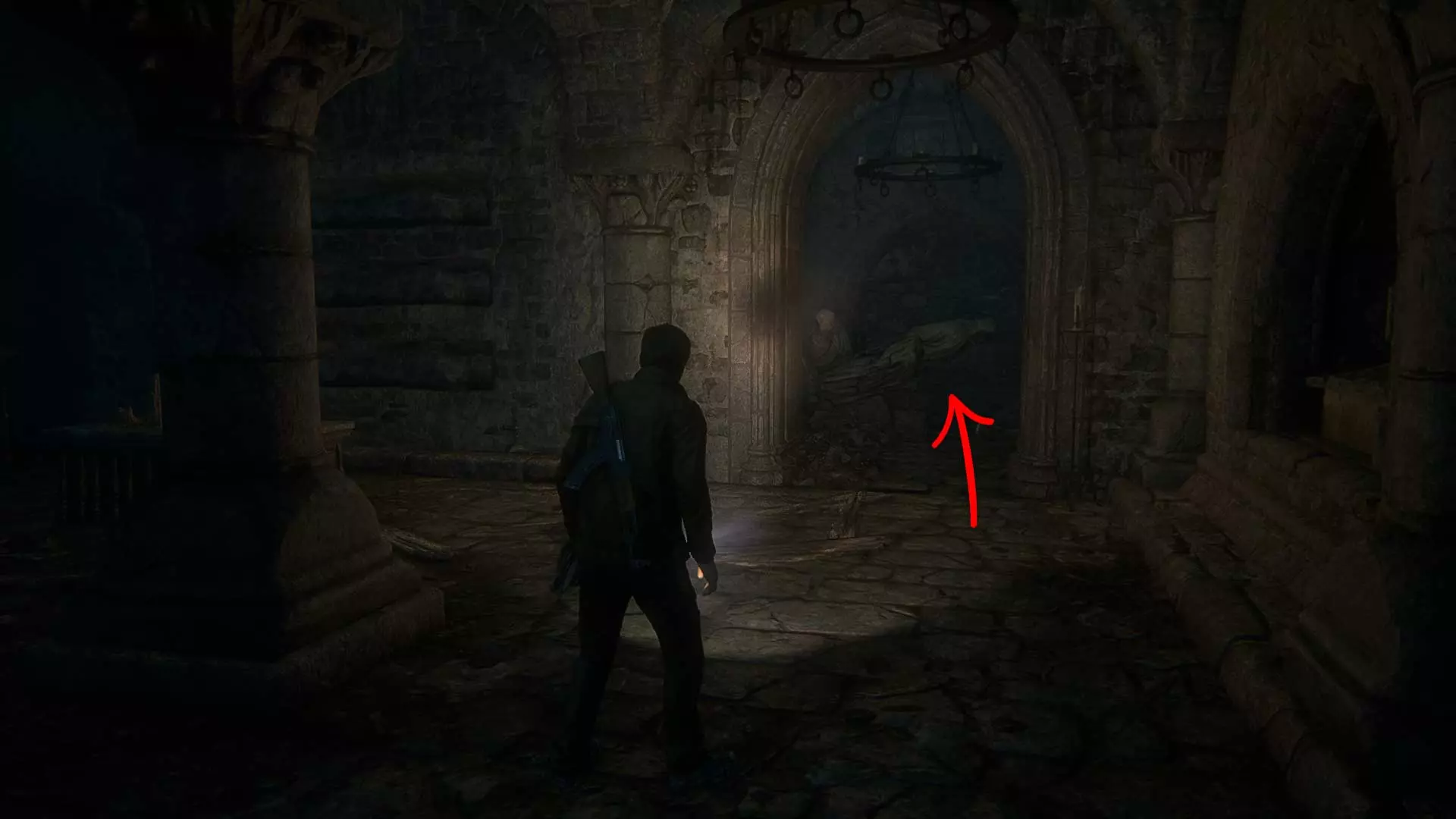 57/68 婚礼曼格提卡 从控制雕像左下手臂的第二个拉杆处跳下到下一层。
