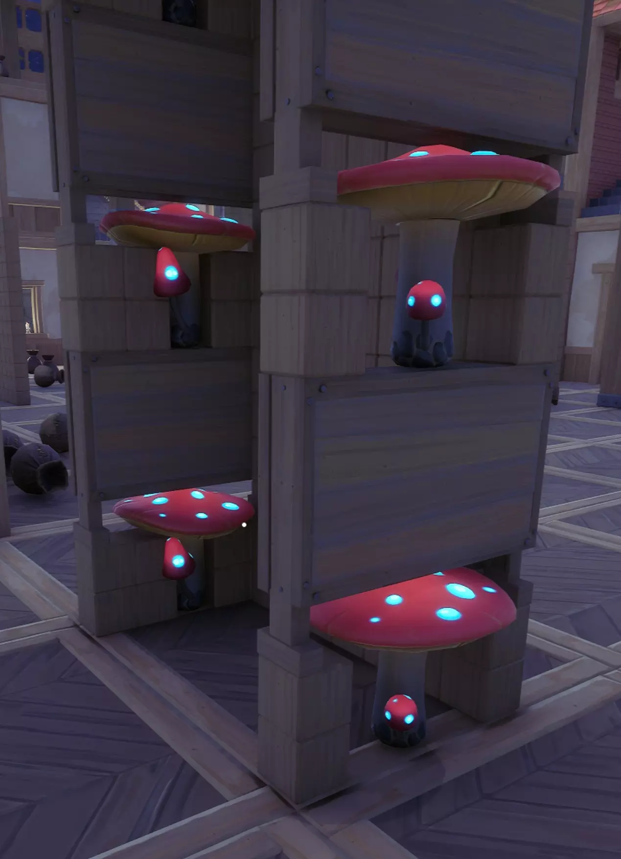 如何为大型垂直建筑建造完美的蘑菇堆叠式垂直电梯。 蘑菇电梯建造指南 跳跃蘑菇之间的距离是关键。你需要将它们间隔适当的距离,以确保你能平稳向上弹射,速度刚好能看清每一层,且不会左右弹跳或卡在蘑菇之间。