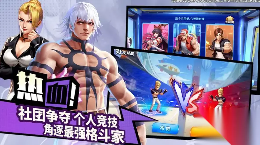 《三国战纪》是一场东汉题材的三国手游,在这个混乱的年代,你将踏入群雄逐鹿的三国舞台,与刘备、诸葛亮、关张马黄赵等各路英雄一同演绎传奇历史。打怪升级武将、搜集装备、还得激活神剑,不仅提升基础属性,还能挖掘武将们的各种花式技能。通过招募、主线任务,把心仪的武将们招养麾下。 》》》》》#三国战纪#《《《《《 6、《拳皇命运》