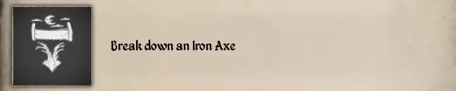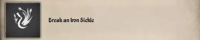 如果你想快速完成,有两种方法可以获得低耐久度的铁斧: 1. 以斧头为武器的土匪 2. 废弃的伐木营地 尽管如此,你仍需要运气。并非所有土匪都有铁斧,土匪也可能使用其他斧头,废弃的伐木营地也可能有其他斧头。 #47 Break an Iron Sickle