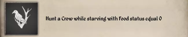 你需要使用毒箭或毒螺栓,但要让他死于中毒而非伤害,所以不能使用伤害过高的箭或螺栓。我尝试了几次,最终成功的组合是:使用反曲弓+毒石箭,并且不瞄准他的头部,只瞄准身体。#12 Hunt a Crow while starving with Food status equal 0