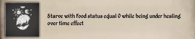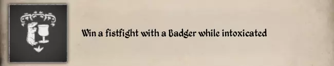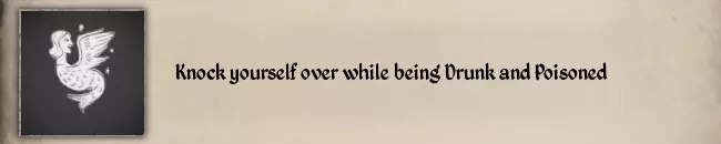 如果你想同时完成这两个纹章挑战,以下是我的建议: 1. 由于其他酒类会降低醉酒值,这会导致挑战#11失败,所以你只能通过饮用蜂蜜酒来让自己喝醉。 2. 你必须从100%中毒状态开始,等待毒素消退至0%。直接食用2个腐烂物会导致100%中毒。 我的方法是一次性喝下2瓶蜂蜜酒,如果角色倒下且仍处于醉酒状态,我会去完成其他纹章挑战(#02 徒手杀死一只獾,以及#21 猎捕一只鹰)。 如果你从未醉倒过,Steam社区的Errapel发现了一个能更快倒下的方法:骑上坐骑,然后制造事故(撞向栅栏或树木)使其摔落。这将帮助你快速完成#23。更棒的是,如果你骑着驴摔下来,还能完成#15 Fall down from a Donkey。 #22 Starve with Food status equal 0 while being under healing over time effect