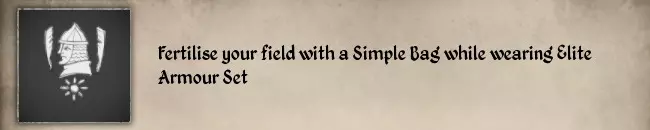 规划一个5区块的果园,种植啤酒花、苹果、梨、李子和樱桃。 #26 穿着精英盔甲套装时,使用简易肥料袋给田地施肥。