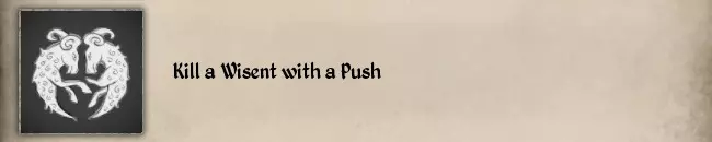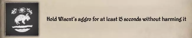 我建议你可以同时完成两个纹章挑战,快速存档是你的好帮手。以下是我的技巧: 1. 熊可能会死于身上的异物(箭、 bolts、长矛),所以当熊开始逃跑时,你必须迅速追上它并挥舞你的镰刀(喝下耐力药水会更容易)。 2. 第七个挑战其实没那么难,熊死后你可以继续往它身上射箭,所以不用给自己太大压力。当你觉得射够了就可以收获猎物,之后会收到解锁纹章的提示。 3. 你也可以通过其他动物来完成第七个挑战,我选择熊是因为它体型够大,方便我射箭。#53 吸引欧洲野牛的仇恨至少15秒且不伤害它 #40 用推击杀死一只欧洲野牛