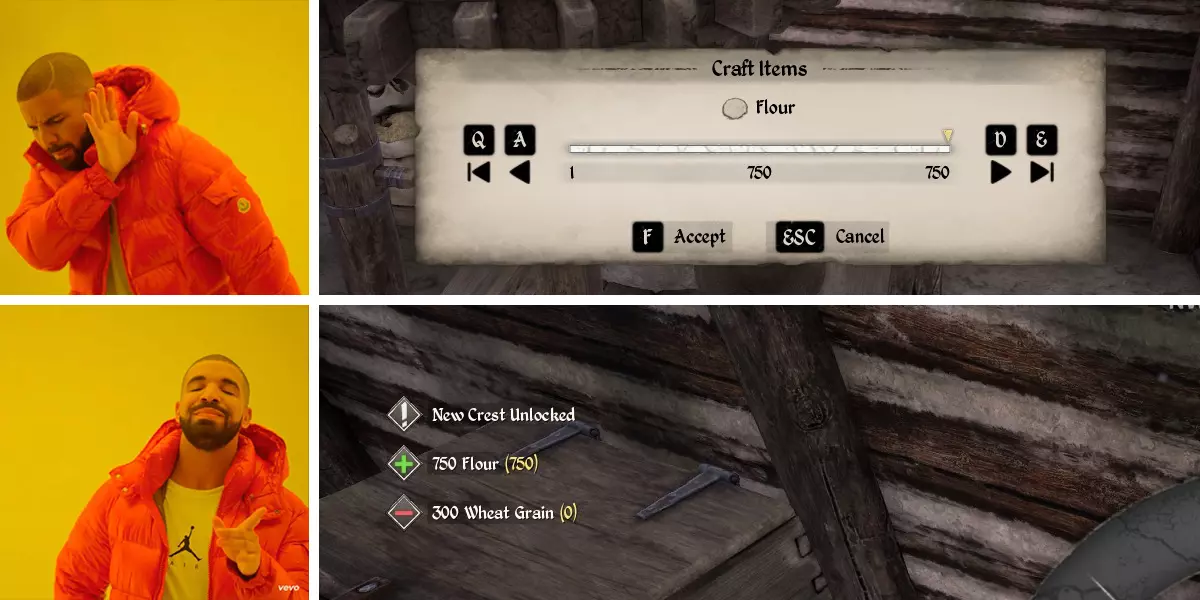 当你打开村民的箱子,立即出现失去王朝声望的提示时,说明你已经成功了一半,然后你可以往箱子里放入任意物品来完成纹章挑战。 #28 一次在磨坊制作750份面粉
