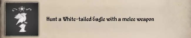 以下是我的技巧: 1. 【站在水中】的要求并不严格,即使站在水洼里也能生效。 2. 你可能需要将驼鹿驱赶到水域,然后喝下伪装药水,这样会更容易。 3. 即使使用伤害最高的铁矛,仍需攻击它的头部两次。 #18 Hunt a White-tailed Eagle with a melee weapon