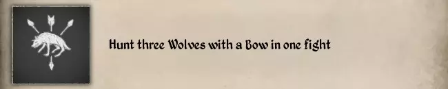 如果你不使用任何技能,生命值为100,因此你必须至少将生命值降至10或更低,依此类推。 如果生命值仍略高,你可以寻找任何燃烧的营火或火盆。站在上面,角色会开始哀嚎,每次哀嚎会减少0.4生命值,这样可以有效地将生命值调整到指定数值。 #54 Hunt three Wolves with a Bow in one fight