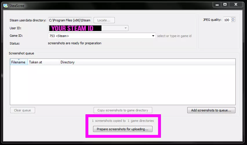 将截图上传到Steam游戏的最简单方法,无需进行“复制到Steam”或“重命名截图”操作。上传截图到Steam的简单方法:首先下载Steascree。首先打开Steascree。如果你的Steam不在C盘,请更改位置。