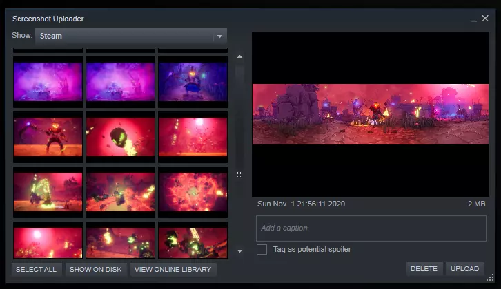 操作完成。打开Steam,你的截图现在已显示在截图窗口中。