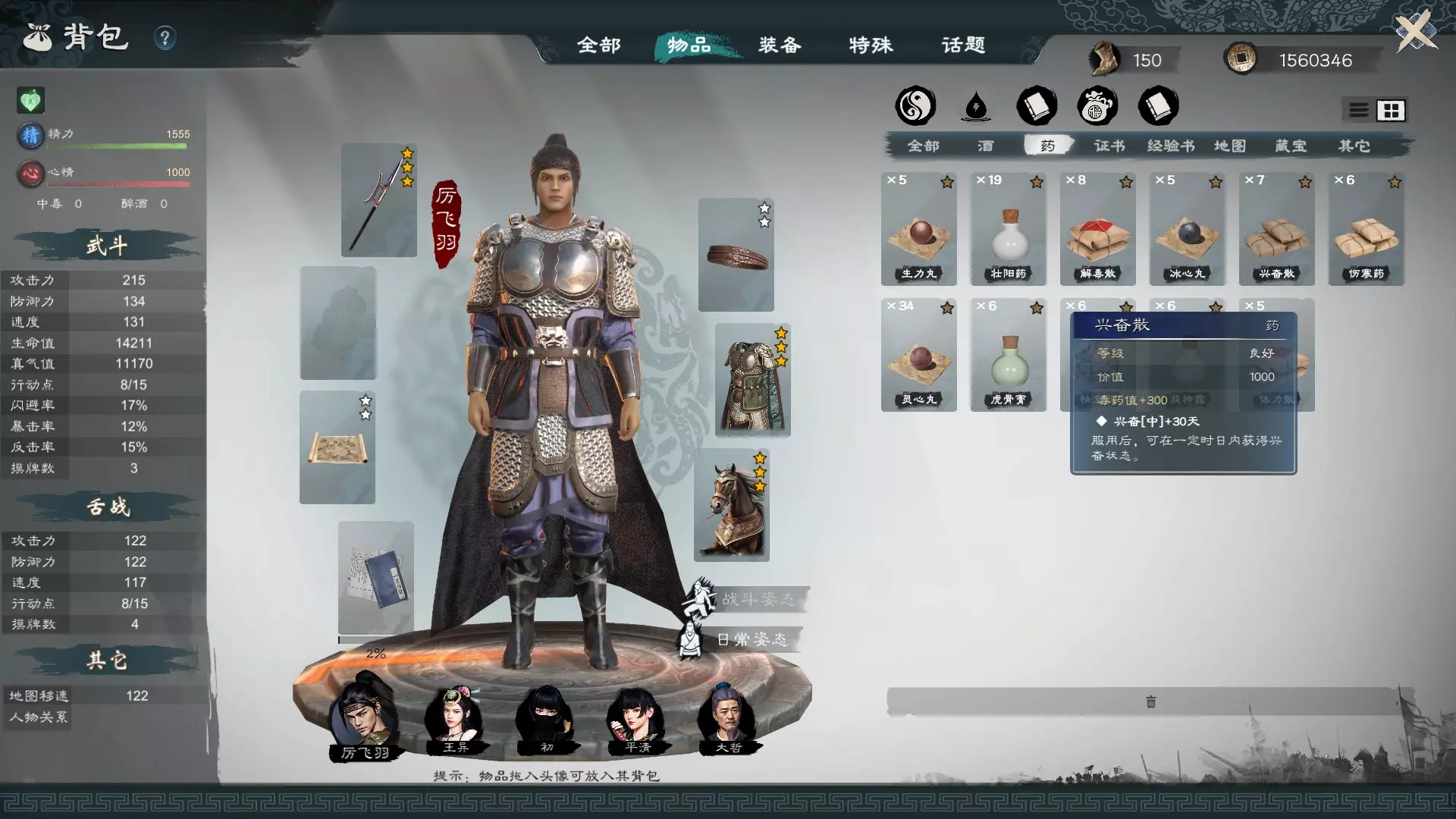 六維推薦 統率: 95+ 武力: 75+ 智略: 94+ 政略: 90+ 魅力: 92+ 意志: 95+ 軍魂推薦 若沒有特別需求的想法,可以比照武將的思路,以進攻做為選擇方向,若有其他思路如主破壞、主干擾、主恢復等就按照自己的想法來,這邊先以進攻的思路做模板。 軍魂之魂可依照武將思路辦理。 軍魂之技則選擇智略的主攻技,如火系下的九天玄雷(智略),另外恢復跟干擾技能都可從水系選擇,可以依照文官軍團的定位來決定。 人物裝備寶物可額外提供一個軍魂之魂,可以依照你的需求選擇搭配。 武魂推薦 裝備一定要選擇文官武器,如扇子等,才能使智魂數值取代武魂數值,也就是智力100智魂12000會直接變成武魂12000。 文官主要是欠缺攻擊技能,造成單打時大部分時間無法做有效輸出,因此必須透過諸葛孔明的軍魂才能有效增加文官的輸出手段。 若智力未滿100,武魂之魂優先選擇金系臥龍,有餘力可再加上水系麒麟血脈,會更穩。 武魂之技可以選擇木系毒標,水系吞天訣補血補氣,無屬性飛云腳,再加一個火系落雷,切記牌多不一定好,進遊戲後可以毒標落雷二選一,另一張拔掉,而輸出就是靠臥龍的出牌機制,沒牌打獻策,有牌就攻擊。 武器選擇上只能選擇文官武器。 智魂推薦 照理來說既然扮演文官應該智力都會偏高,但我們還是以比對手慢出手做為考量依據,直接套用武將範本。 由於比對手慢出手,智魂之魂優先選擇木系舌戰群儒,若有餘力再搭配火系必中之魂。 智魂之技則選擇木系的解、水系的識破、火系的語驚四座,無屬性的同歸於盡 若智力100,則基本上沒有人會比你快出牌,智魂之魂除了主要推薦火系必中之魂外,其他可自由搭配那種多抽牌、多給AP的智魂之魂。 裝備推薦 頭盔務必選擇有加命中的。 胸甲可以選擇有加閃躲。 武器只能選擇文官武器。 心得感想 文官在武鬥上的確是比較弱勢,又或者是我沒發現其優勢的地方,總之像第一個劇本中,想在府宴上打呂布+徐榮不是問題,但面對高爆發的關羽+張飛時,有時就比較靠臉。 在野?仕官?或君主、逆天改命 身份選擇分析 想怎麼玩自然是個人的事情,這邊僅就遊戲特色與個人體驗後做一個分析,以供新入遊玩家參考: 在野:十分自由,但某種程度而言後續發展也是有所受限,在渡過初期掙到第一桶金之後的體驗會逐漸與仕官及君主不同。 優點:無拘無束,自由體驗與這個三國世界內的人物、事件的互動。 缺點:中期後發展差異會較為明顯,尤其在經濟收益方面,但並不妨礙角色泡妞。 仕官:初期自然是十分不自由,但只要不怕把官當丟,其實也是還好,渡過初期成為五品官後能擔任太守,可以購買轄下的所有私有地,故家產也開始豐厚起來,尤其是在大勢力君主麾下任官,即使仍不如君主,但身為太守的角色已較在野玩法富裕不少。 優點:可以配合遊戲特色「逆天改命」世界跳轉陣營並累積功績,透過發言力輪換自己的管轄,並藉此買下大量私有地,改善經濟、自建私兵。 缺點:初期太浪的話,官派任務不做、季度會議不與,會被扣功績與發言力,不但官升不上去,發言力-500後可能會有被主公砍頭的生命危險。 君主:三國系列的基礎概念玩法,但在這個有逆天改命事件的遊戲之內,個人並不推薦直接玩君主,主要是參與這些逆天改命也會有另類的歷史參與感,而且也是本遊戲的特色。 優點:搶錢搶糧搶娘們,弱者才玩啥逆天改命,我想要的通通都跑不掉! 缺點:沒有體驗到此遊戲的核心特色。 個人是推薦依循遊戲特色:逆天改命事件來玩,直接從190年劇本開始在董卓手下任官,並隨著歷史事件發展在各大陣營之中跳轉。 由於目前還是EA階段,或許會有些歷史事件觸發與銜接的問題,個人在版本v0.58.66後開了一個新檔體驗至今,即將目睹江東小霸王崛起,暫時沒有什麼問題。 假如真的遇到歷史事件觸發或銜接的問題該怎麼辦? 若真遇到問題,就是後續事件可能無法繼續觸發,可以直接進入君主扮演繼續完成這輪體驗。 歷史事件的推進與逆天改命 歷史事件推進與從過程中逆天改命算是這個遊戲的特色之一,嚴格來說是一種在製作團隊視角下的另類歷史參與及體驗,屬於錦上添花,但由於EA階段可能還是會有些bug或問題,比如無法觸發某個歷史事件推進,導致事件發展無法滿足後續的事件要求而中斷,這部分只能由玩家時刻監控世界發展條件有無符合推進要求,原則上建議: 遊戲設定中,關閉戰死、關閉NPC戰爭。 時刻注意需要的陣營、地盤、與關鍵人物是否存活、坐牢。 這樣做會比較能夠從190年的劇本體驗到後期的事件,因為在歷史事件推進後,遊戲系統會直接安排這些勢力的新地盤,以利繼續推進下個事件,舉例來說: 例如1. 曹操父親在徐州被殺的後續事件推進完成之後,小沛就會變成劉備的,呂布則從濮陽轉進下伾。 例如2. 賈詡密詔護送獻帝回洛陽後,許多參與人物也會從李榷陣營轉進其他陣營,以利推動下個事件。 若NPC陣營之間的戰爭太過活躍,有可能會導致濮陽不是呂布的,進而影響偷襲曹操的事件觸發不了,又或者如果許昌不是曹操的,則會導致獻帝回洛陽後無法觸發曹操挾天子令諸侯的遷都許昌,故基本上就是要注意這些雜七雜八的事情。 而在角色跳轉各陣營的時間拿捏部分,也需要掌握一下節奏,因為在野後會有冷卻期,每個季度只能申請仕官一次,玩家必須妥善選擇與安排,才能順利銜接各項事件的進行,但基本就是依照歷史重大事件推進去安排陣營