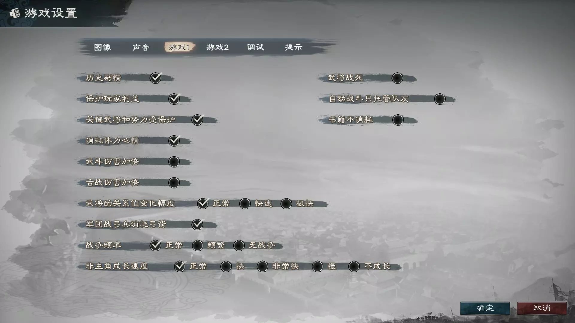 如图所示,都是可以使游戏变得更加容易的选择。若不想钻研太多,纯粹想休闲体验的话,可以取消勾选消耗体力心情与军团战弓兵消耗弓箭的选项,并自行勾选书籍不消耗、武斗伤害加倍、舌战伤害加倍,以及将武将关系值变化幅度调高,这些都能有效降低游戏难度。 另外,在游戏设置内的【游戏2】页面中,有一个隐藏头饰模型的选项。若觉得随意戴头盔不好看,可以勾选该选项来隐藏头盔模型。 存档位置:如果50个存档栏位已满,想要自行备份存档(包括新创建的角色),可以在以下位置找到存档:使用者名称 AppData LocalLow FreeWing ThreeKingdom SaveData 如果没有自行更改文件位置的话,通常是在C盘。 游戏内的薛定谔猫可通过SL变动的内容有: 公告板内的任务。 杂货店的特价贩售数量,只有这个需存档在城镇地图,进入后就固定了。 大商行的贩售物品。 酒馆的酒与黑心商人的贩卖物品。 客栈的旅行商人。 太学的书籍。 SL的存档点都必须在打开界面之前,若打开了公告栏界面或交易品项界面时才记录基本上就不会刷新,在此我们以黑心商人为例来做存档点说明: 进入酒馆靠近黑心商人并记录,save01。点击黑心商人进入交易界面,不交易退出并记录,存档02。 再次点击黑心商人进入交易界面并全部购买(五个物品)。 出去大商行或自宅/客栈房间进行鉴定。 记住要购买的物品,重读存档02。若五个物品都没有优异品质的话,重读存档01重复进行。 购买要购买的物品,鉴定后自用或变现。 原则上存档读档自然是适合想要获取最大利益并有耐心的玩家会使用的玩法,不过这款游戏有太多地方可以这样进行利益最大化,存档读档次数多了反而会使游戏进展变慢,也算是变相失去游戏乐趣,请谨慎使用。 游戏内这些字的读音:穰苴:rángjū