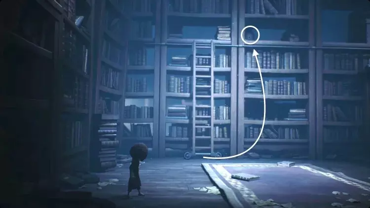 它可能无法为你提供多少保护来抵御坠落的碎片或心理创伤,但没人会轻易招惹一个凶猛的行走棒球——尤其是当它正径直朝他们冲过来的时候。 第二顶帽子——铁皮人化身: 在第二章再深入一些,经历一段紧张的电梯旅程和穿过狭窄通风管道的危险行程后,你会发现自己身处学校昏暗的图书馆里——一个充满被遗忘知识和潜伏阴影的洞穴。到达后,你的注意力会很快被一个靠在布满灰尘的书架旁的高大活动梯子吸引。要拿到那顶难以捉摸的铁皮罐头帽,轻轻将梯子向右推一个书架的距离,使其处于你可以完美攀爬的位置。小心爬到顶部,帽子像一座小奖杯般栖息在书堆之上。这顶特殊的头饰——是对传说中铁皮人的讽刺致敬——在图书馆压抑的混乱中既显得格格不入,又完全契合,仿佛摩诺短暂化身为守护被遗忘秘密的机械哨兵。收集它,继续前进——但要小心,即使是这里最安静的角落,回荡的也不仅仅是旧书页翻动的低语。