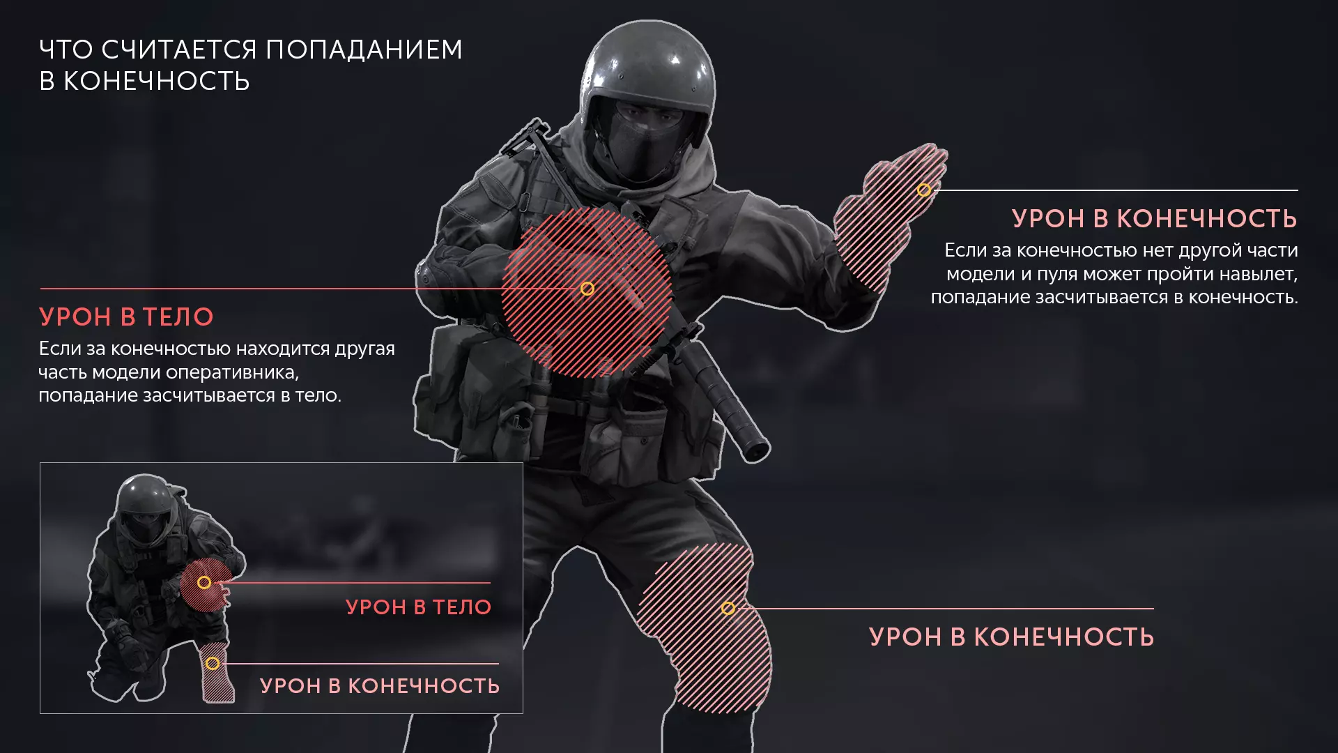 将光标悬停在干员的武器图标上,即可查看游戏中的伤害数值。伤害是指单次命中所扣除的生命值点数。穿甲率是指当敌人拥有护甲时,对其生命值造成的伤害比例。对于本文关于伤害的内容,只需记住武器具有基础伤害、穿甲率以及命中肢体时的伤害修正值即可。还有其他修饰符:爆头伤害、远程伤害或技能修饰符;我们将在后续内容中介绍它们的特性。本文讨论的是武器在有效射程内开火时的伤害情况。所有干员的肢体命中修饰符均为基础伤害的80%。肢体伤害的判定条件为该肢体未掩护身体,即当士兵的腿部或手臂(前臂)受到侧面攻击时,通常会受到80%的基础伤害。 RAID系列中的支援兵、医疗兵和狙击手在升级时有一项特殊特性,可将肢体所受伤害降低20%。因此,当他们的肢体受伤时,将受到60%的伤害。