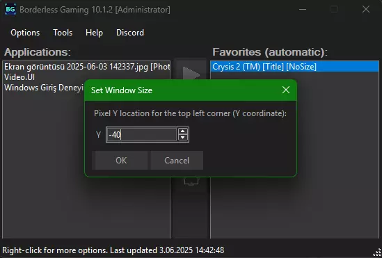 设置高度指令数值。在此处,您需要将正在使用的显示器垂直分辨率加上40,然后将结果输入到这里。例如:1080、1440、1600等。我使用的是1920x1080显示器,因此我需要在“1080”指令上加上“40”,也就是需要输入“1120”指令。简而言之,在您的垂直分辨率上加上40,将结果输入到这里。