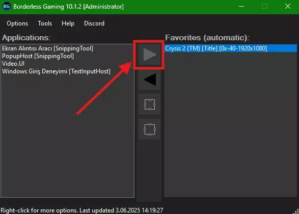 选择所需游戏。 如以下图片所示,您运行的游戏将显示在左侧窗口中。选择该游戏,并通过指向右侧窗口的按钮将游戏移至右侧窗口。这是必要的,因为我们将在右侧窗口中对移动的游戏进行必要的设置。