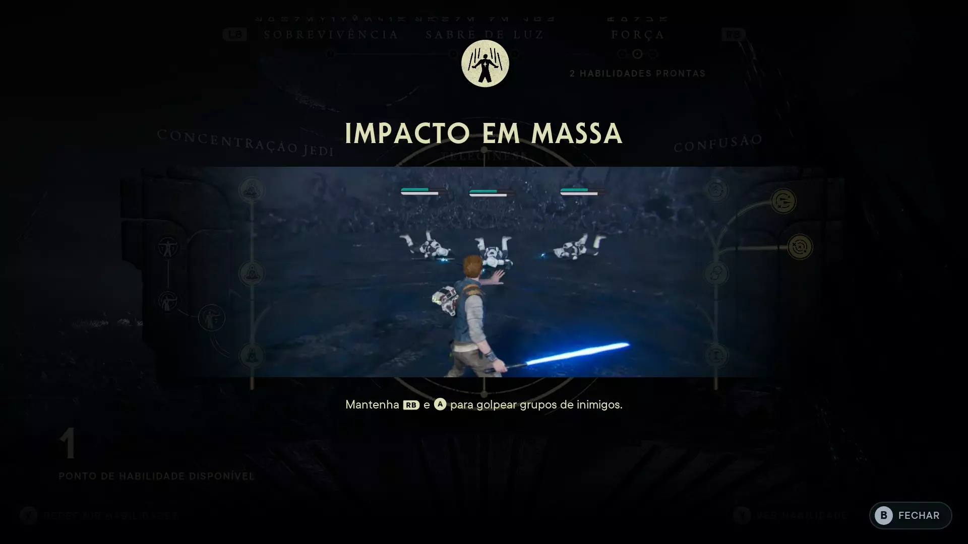 Pancadão · 单次使用力量冲击击中5名敌人。在5名敌人身上同时使用群体冲击技能后解锁。