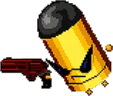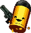 “双生鸡比普通持枪小兵体型更大、更具威慑力。它们守护着第一道大厅,防止新手枪手进入。阴沉鸡和乐天鸡是同一个模子刻出来的,总是形影不离。如果其中一只鸡兄弟在战斗中倒下,另一只会以双倍的力量继续攻击入侵的枪手。” 行为 两只双生鸡拥有相似的攻击方式: 其中一只双生鸡会冲向玩家,受到伤害后停止冲锋。快速发射6发子弹。 向上跳跃,并向所有方向发射子弹。 发出哨声,召唤2名枪手前来支援。此外,每位兄弟都拥有独特的攻击方式: 乐天派会向玩家快速发射一连串子弹。 阴郁者会发射3轮子弹,每轮3发。 当一名兄弟死亡后,另一名会陷入狂暴状态,恢复少量生命值并改变其攻击模式。可以通过同时杀死两人来避免这种情况。战术:与两个兄弟保持距离,始终处于他们的同一侧,不要夹在他们中间。小丑会发射大量子弹,只需朝一个方向移动就能轻松躲避。尽量通过横向移动来躲避其他子弹,而不是翻滚。在这场战斗中,翻滚很容易让你撞上其他近距离飞行的子弹。Boss会定期召唤帮手,要立即消灭它们,以免带来不必要的麻烦。我个人总是觉得先杀死其中一个兄弟,然后再对付另一个,即使另一个更强,因为需要躲避的子弹数量总会减少。不过有一种所谓的“罗密欧与朱丽叶”战术,玩家会尝试对兄弟俩造成同等伤害,最终同时击杀他们,以避免其中一方获得强化。哪种方式更适合你,由你自己决定。 子弹之王