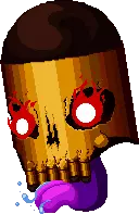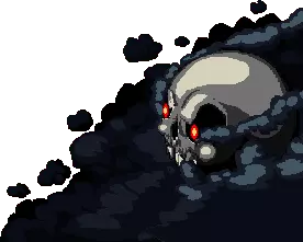 这个巨大的颅骨,是颅骨幽灵的首领,被黑色的火药与仇恨之云环绕。它不会让任何人通过。 行为模式: 1. 沿房间滚动,撞到墙壁时会释放大范围的环形弹幕。 2. 使房间变暗,并在房间内不同位置 teleport,发射5发大型子弹组成的弹幕,这些子弹会反弹多次。 3. 从双眼发射螺旋状旋转的子弹连射。会朝玩家方向快速连发射击。 会跳跃并从自身发射环形弹幕。 战术