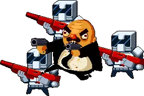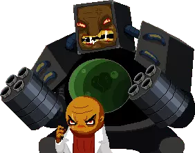 离 Boss 远一点,这样更容易躲避它的攻击。它有两种近战攻击——剑和纹章,所以不要靠近。当头顶开始落下闪电形状的子弹时,直接躲开就行,好在它们之间的距离足够你躲避。时不时地,博士会尝试强化他的造物,此时他头顶会出现绿色箭头(游戏中敌人强化的标准标识),在这段时间内,你可以通过攻击博士来打断这次强化。 这个 boss 是对《德军总部》系列游戏及其角色威廉·“骷髅头”·施特拉斯博士(Wilhelm 'Deathshead' Strasse)的致敬,该角色进行过非人道实验并制造了超级士兵。 隐藏 boss