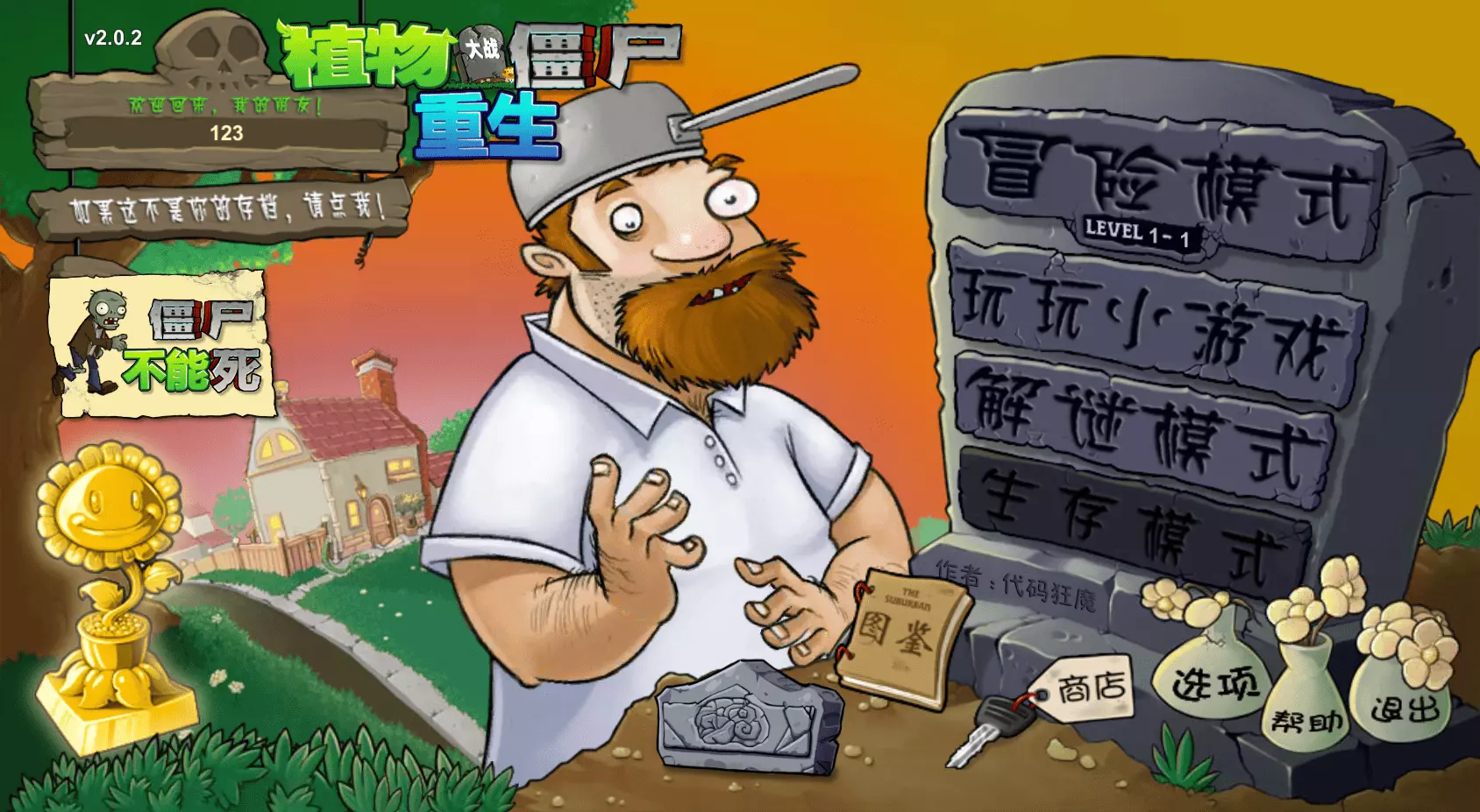 重生 重生是一款《植物大战僵尸》的粉丝自制游戏,包含新植物、新僵尸和升级系统。游戏新增了有趣的迷你游戏,并改进了僵尸模式。主菜单现在播放戴夫的音乐,冒险模式中也增加了更多有趣内容! 如何在电脑上安装: 由于涉及外部链接,安装步骤已省略。如何在安卓设备上安装:前往相关链接下载apk文件,然后进行安装即可开始游戏。压缩包密码:123