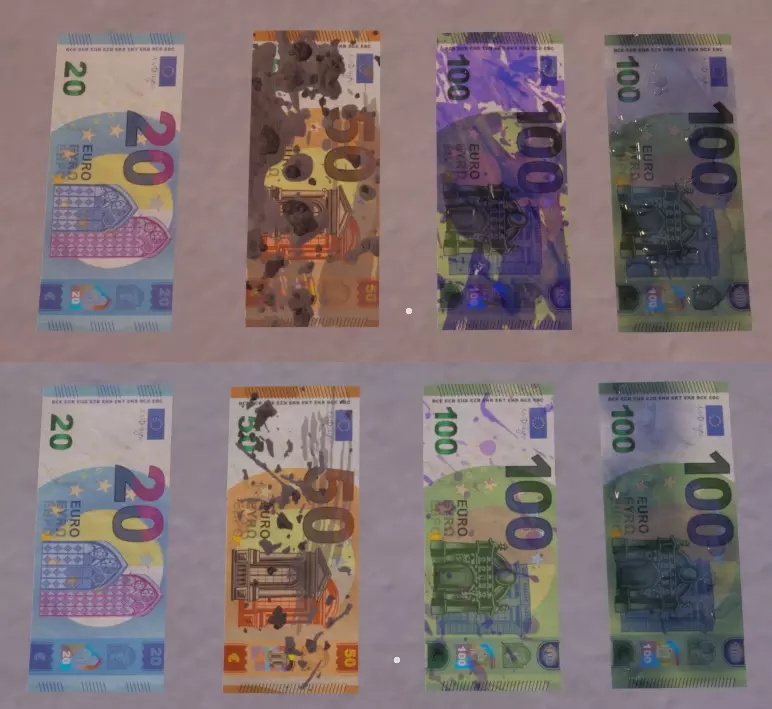 钞票状态 不同效果对应不同等级。脏污、沾染墨水和潮湿状态的钞票具有“传染性”,若与干净钞票混合会扩散。 建议清洗并烘干脏污钞票,而沾染墨水的钞票处理起来非常费力,建议喂给猪、用于不介意钞票状态的任务或直接烧毁。无论如何,务必将沾染墨水的钞票单独隔离存放。 为防止钞票沾染墨水,务必用刀割开银行钱袋。这样可以避免触发钱袋内的安全装置! 状态说明: - 干燥且干净 - 脏污 - 棕色 - 沾染墨水 - 蓝紫色 - 潮湿 - 深色、灰色且有光泽