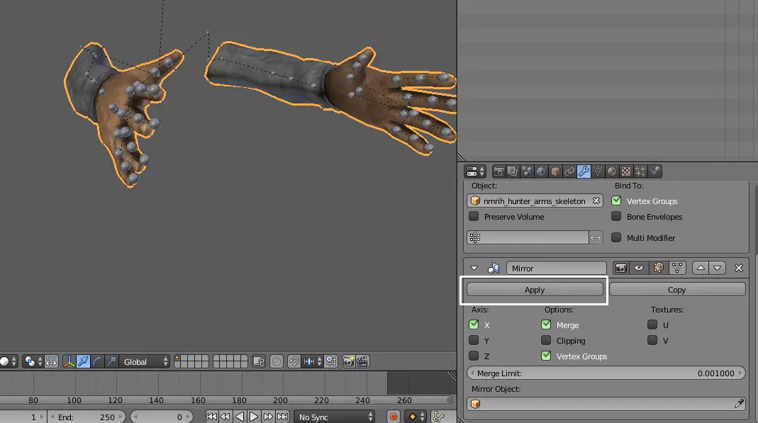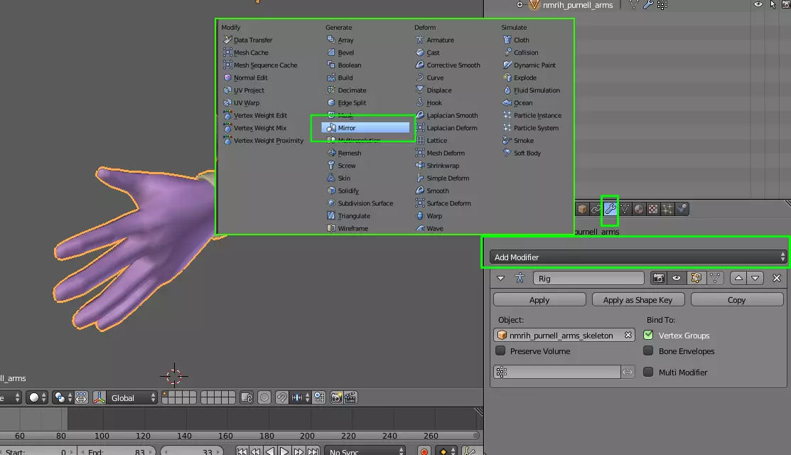 现在镜像手臂模型。