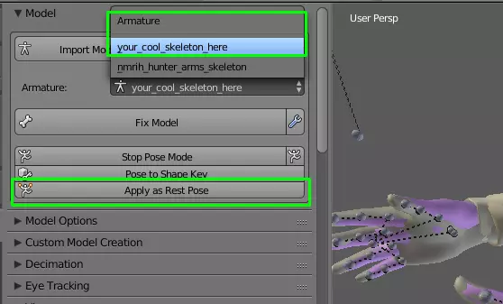 现在你需要检查Hunter的所有骨骼是否与自定义视图模型相匹配。慢慢来,确保每根骨骼都与自定义手臂网格正确对应。不需要完全精确匹配,只要处理得当即可。