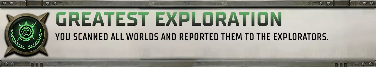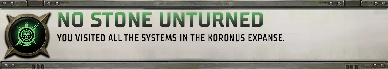 探索 koronus 星区的全部 35 个恒星系统即可解锁此成就。Greatest Exploration