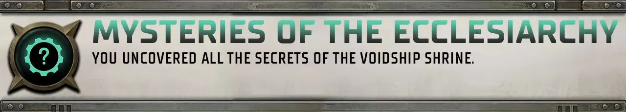 故事发生在 koronus expanse——一片地图标注极少且危机四伏的太空区域,这个偏远地带充满了可供探险家和冒险家们发掘的机遇。作为一名行商浪人,你将驾驶巨大的虚空舰船穿越浩瀚星海,绘制这片行星群的星图。 旅途中,你会遇到形形色色的帝国子民以及异星种族。在第41个千年,即便是行商浪人,星际旅行也同样危机四伏——亚空间是个诡异而恐怖的地方,潜藏着无数危险。亚空间生物虽不总是显露身形,但其恐怖程度丝毫不减,你和船员们必须时刻提防它们。但为了解锁全部成就,你必须踏上这条征程。 完成故事任务。部分成就是通过完成一些相当普通的事情获得的:完成故事的各个章节、打通主线剧情、完成支线任务等等。 试着在每个角落寻找有趣的任务,沉浸在角色的故事中,克服激动人心的困难,解锁成就将指日可待。 【注意】《战锤40K:行商浪人》是一款角色扮演至关重要的RPG游戏。角色周围的世界非常庞大,他们必须遵守这个世界的法则。不要仅仅局限于主线故事,你会发现很多有趣的内容,同时也能解锁许多成就。发挥你的想象力和战术智慧,通过运用非常规战斗策略可以获得许多游戏成就。利用你的能力、地形和角色站位在战斗中获得最大优势,游戏不会让你白费功夫。 核心难度?部分成就的描述可能会误导你,因为它们需要在核心难度下完成,但游戏本身并没有这个难度。核心是该难度的旧称,现在名为大胆,该难度等级位于普通难度的右侧。未来可能会修复此问题,但请记住,在我的指南中,成就描述已修正。