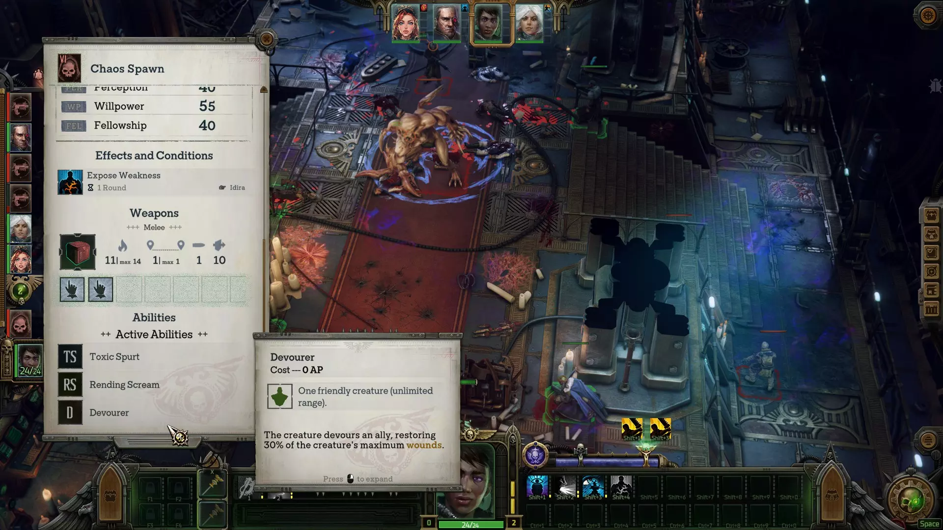 在序章的最后,你的小队会登上一艘宇宙飞船的舰桥,在一段简短的过场动画后,你将遭遇序章的 boss——混沌卵。你的任务是杀死这个生物,且确保它在战斗中没有吞噬任何参与战斗的邪教徒。