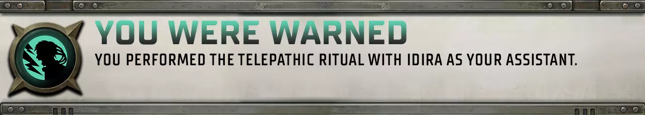 信仰人类生命与自由的价值。坚信善意的力量,无需人为禁令也能战胜宇宙的恐怖与危险。渴望寻求共同点与妥协,而非毫不留情的毁灭。 信徒:行商浪人和两名随机盟友在战斗开始时获得等于自身决心值的临时生命值。 追随者:每场战斗的第一回合,行商浪人和其盟友获得额外的(2 + 行商浪人叛逆等级)点精神力。 拥护者:行商浪人和其盟友激活英雄行为所需的动量值减少30点。 狂热者:每场战斗中,行商浪人可以选择一名盟友。目标盟友可立即使用其英雄行动,无需消耗动量。不适用于英雄行动处于冷却中的盟友。 狂热者 盟友的任何可能击中其他盟友的攻击将尽可能被闪避。任何可能以盟友为目标且包含抗性检定的友方技能,都将被盟友抵抗。