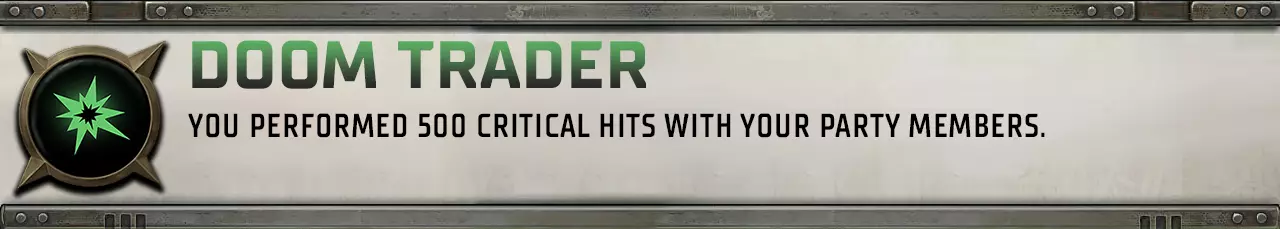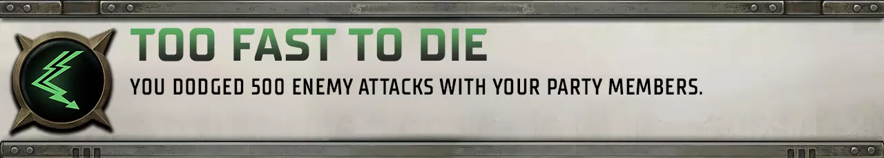 一个累积型成就,计算你的角色每次受到攻击并成功闪避的次数。每当伤害值位置出现【闪避】提示时,你就在向完成该成就迈进。Doom Trader