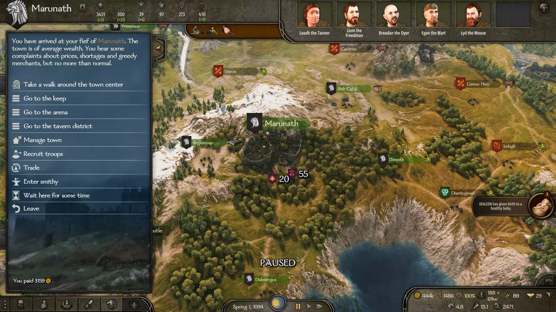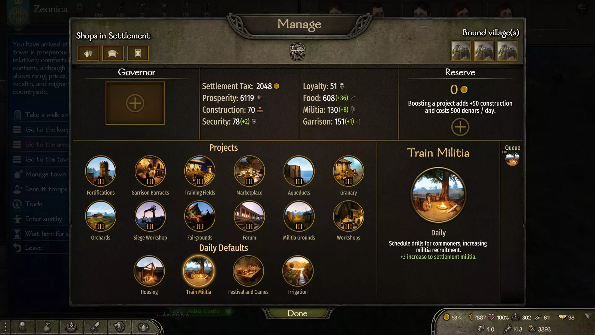 接下来,你需要前往你的城市或城堡,与那里的总督交谈。你可以在城市管理菜单中自行任命总督。