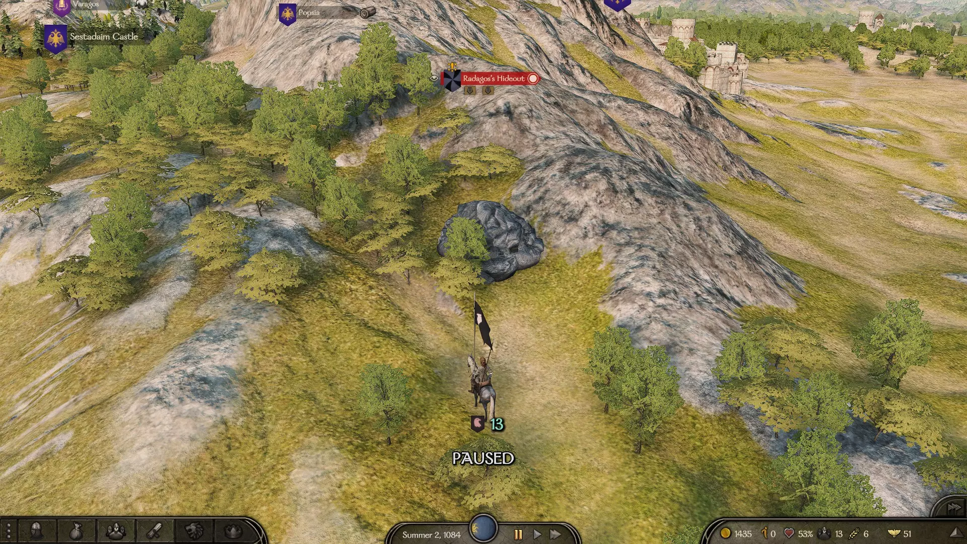 但我仍然建议你在游戏过程中至少访问每个城市或城堡一次,在游戏刚开始时这样做尤其容易,那时你身边已经有了一些队伍成员,但还没有宣誓效忠任何势力。 旗帜 势力 城镇 城堡