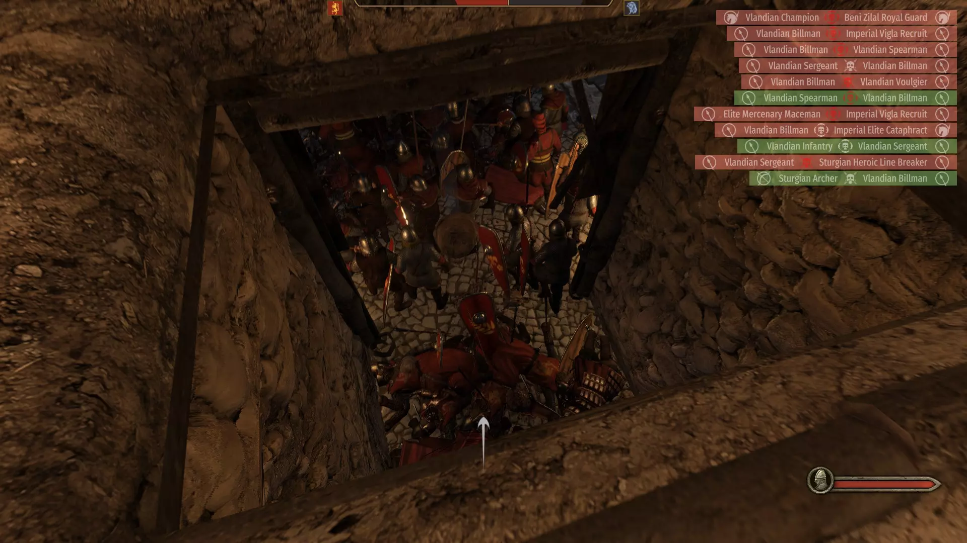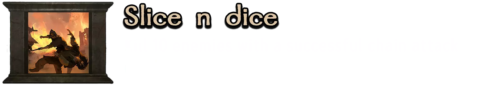 可在单人模式中解锁。在防御城堡或城市时很容易获得该成就。城市的门楼和城墙上有大量鹅卵石,可投掷到大意的敌人头上。投掷的石块会造成相当大的伤害,因此可以一次性杀死多名士兵。完成此操作即可获得该成就。