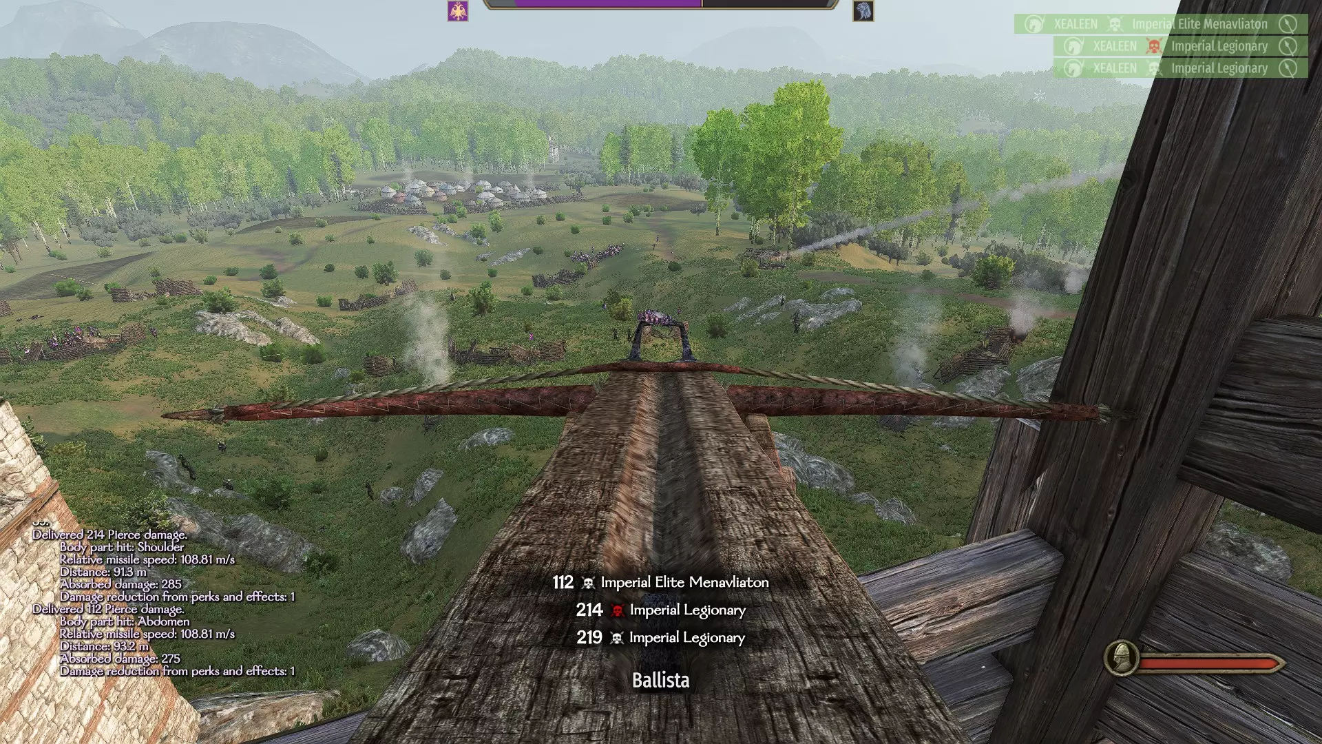 为达成此目标,建议你使用弓或十字弩,并升级相应的技能树。当你的弓或十字弩技能至少达到100级时,射击会更加精准和灵敏。若技能等级达到200-250级,再加上你的个人射击技巧,准确命中目标将不再困难。 我只能建议你在围攻或防御城堡/城市时尝试完成这个成就——城墙上有许多敌军静止不动,这会让你的射击稍微容易一些。 另外,不要忘记,当你击中敌人时,屏幕左侧会显示射击信息:射击距离和命中的身体部位。利用这些信息来调整你的下一次射击。爆头信息始终以紫色突出显示,区别于其他信息。